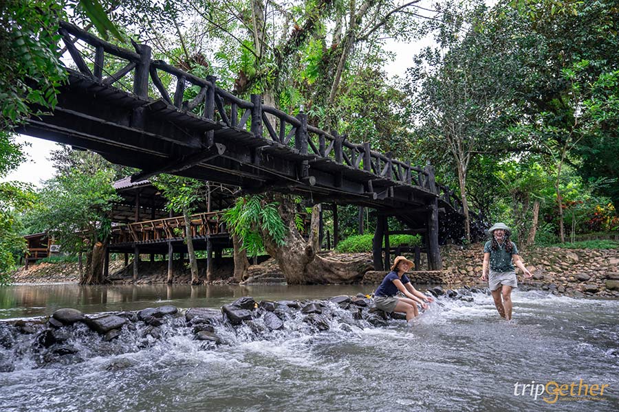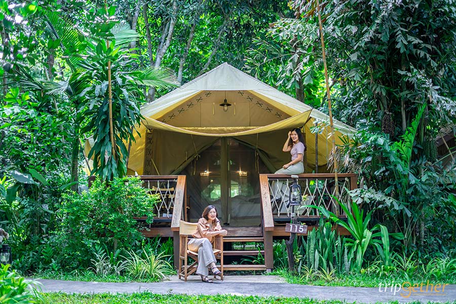 หินตก ริเวอร์ เเคมป์ ณ ช่องเขาขาด ที่พักสไตล์แกลมป์ปิ้ง นอนเต็นท์ท่ามกลางธรรมชาติแบบสุดหรูพร้อมสิ่งอำนวยความสะดวกครบครัน มีห้องน้ำในตัว ภายในเต็นท์กว้างขวางสามารถมีถึงสองเตียงนอนพักได้สูงสุด 3 คนได้แบบสบายๆ ไม่แอดอัด ตัวเต็นท์ยังตั้งเว้นระยะห่างได้อย่างดีบอกเลยว่าเป็นส่วนตัวมากๆ บริเวณรีสอร์ทยังร่มรื่นสามารถเดินเล่น ปั่นจักรยานชิลล์ๆ หรือใครอยากแช่น้ำในบ่อน้ำแร่พร้อมชมวิวแม่น้ำแควน้อยก็สามารถทำได้ นอกจากนั้นยังมีบริการสปาอีกด้วย สำหรับครอบครัวหรือแก๊งค์เพื่อนที่อยากเปลี่ยนที่นอนสัมผัสบรรยากาศใหม่ๆ บอกเลยว่าที่หินตก ริเวอร์ เเคมป์ ณ ช่องเขาขาด มาเช็คอินแล้วถูกใจแน่นอน