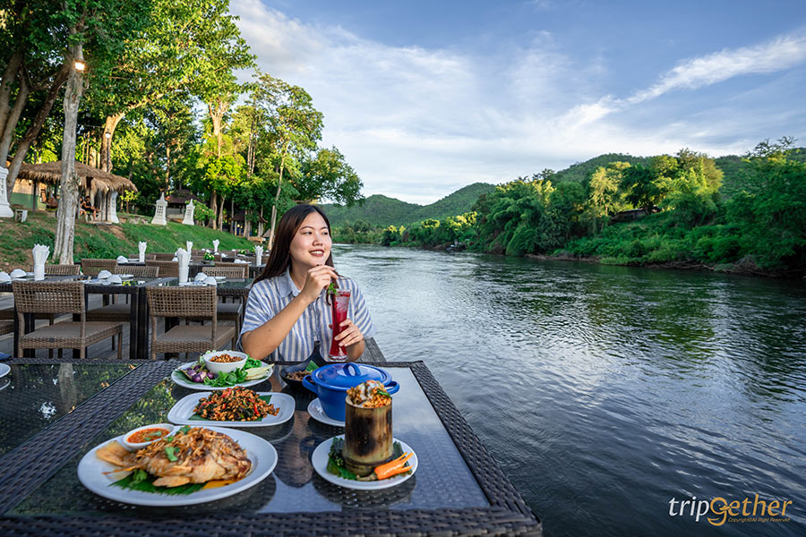 Mida Resort ที่พักโอบล้อมด้วยธรรมชาติวิวทิวเขาและตั้งอยู่ติดกับแม่น้ำแควใหญ่ มีห้องพักให้เลือกหลากหลายแบบ สำหรับครอบครัวหรือแก๊งค์เพื่อนที่ Mida Resort มีห้องใหญ่อย่าง family deluxe room, Two bedroom pool villa และ Baan rom mai ให้เลือกเช็คอิน ไม่เท่านั้นบริเวณรีสอร์ทยังมีทั้งสระว่ายน้ำขนาดใหญ่ให้ได้ลงเล่นกันอย่างเพลิดเพลิน หรือจะเดินเล่นนั่งชิลล์ริมแม่น้ำก็สามารถทำได้ และสำหรับทริปพักผ่อนแบบนี้ก็ไม่ต้องออกไปหาร้านอาหารไกลๆ เลย เพราะทางที่พักมีห้องอาหารบรรยากาศดีอย่าง The Terrace และ River Romance เปิดให้บริการอยู่ด้วย บอกเลยว่ามากาญจนบุรีทั้งที่ถ้าอยากครบจบในที่เดียวแนะนำมาพักที่ Mida Resort