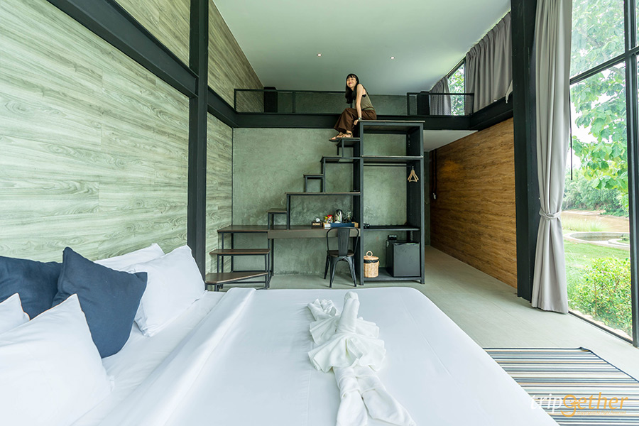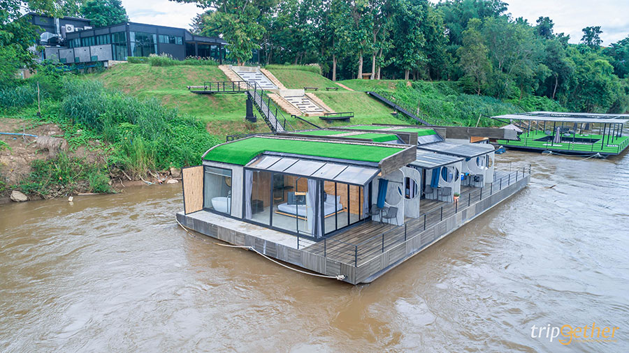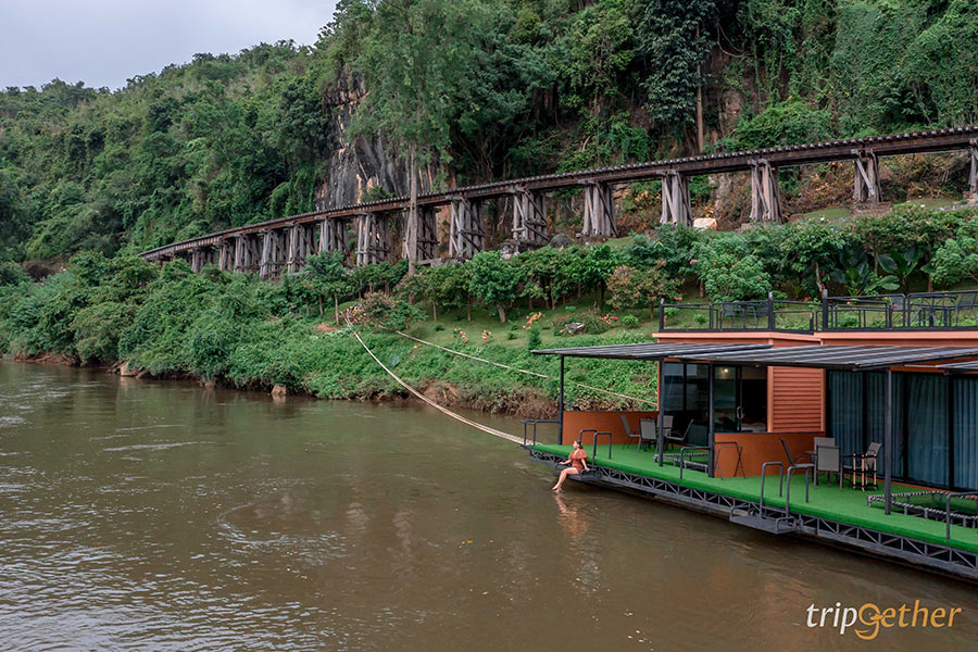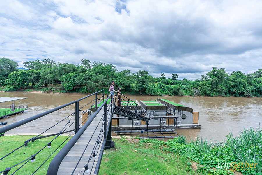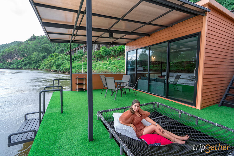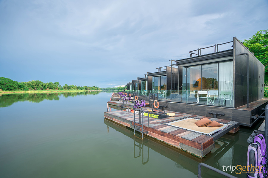 The Tryst River Kwai ที่พักริมแม่น้ำแควน้อย ดีไซน์สวยมีทั้งห้องพักบนฝั่งและริมน้ำให้เลือก สำหรับครอบครัวหรือแก๊งค์เพื่อนที่มองหาที่พักเพื่อใช้เวลาร่วมกันในวันหยุดพักผ่อน ที่นี่มีห้อง Panoramaic River Vibe สำหรับ 2 – 6 คน ห้องกว้างพร้อมระเบียงและชั้นลอย วิวพาโนราม่าริมสุดของแพที่สามารถมองเห็นแม่น้ำแควได้แบบเต็มๆ มาพร้อมอ่างอาบน้ำและสระว่ายน้ำส่วนตัวอีกด้วย ไม่เท่านั้นยังมีห้อง River Vibe, ห้อง Panoramic Pool Garden และ ห้อง Pool Garden ที่สามารถรองรับผู้เข้าพักได้สูงสุดถึง 6 คนอีกด้วย บอกเลยว่าที่ The Tryst River Kwai เหมาะสำหรับครอบครัวหรือแก๊งค์เพื่อนที่กำลังหาที่พักไปนอนชิลล์ชมวิวธรรมชาติริมแม่น้ำอันแสนสงบแบบสุดๆ