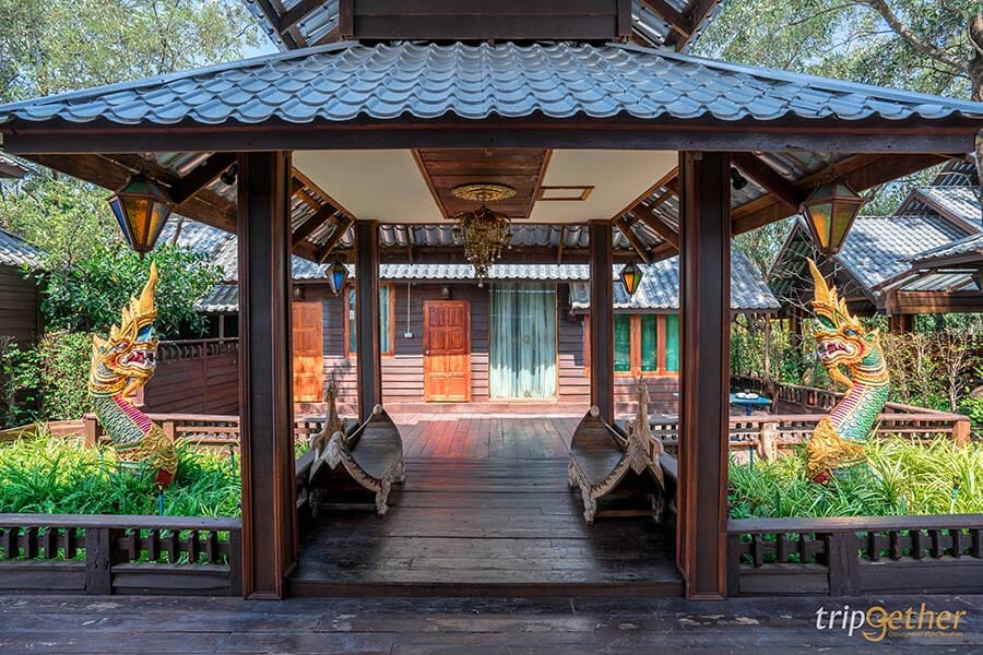 รัตนะบุรี จันทบุรี โฮมสเตย์ ที่พักสวยสไตล์ล้านนาที่มาพร้อมกับบรรยากาศริมน้ำแห่งนี้ ถูกออกแบบมาอย่างเป็นเอกลักษณ์ โดดเด่นด้วยส่วนของหลังคาที่คล้ายกับปราสาท โดยผสมผสานศิลปะของพม่าลงไปอย่างลงตัว ทั่วบริเวณถูกตกแต่งด้วยงานสถาปัตยกรรมและรูปปั้นต่างๆ ส่วนของที่พักภายในจะมีความเรียบง่าย เน้นใช้สีขาวสลับกับวัสดุไม้มาพร้อมกับเตียงนอนนุ่มๆ และสิ่งอำนวยความสะดวกมากมาย รายล้อมไปด้วยธรรมชาติและสายน้ำ เป็นอีกหนึงที่พักในโซนแหลมสิงห์ที่มีความสวยงามและร่มรื่นมากๆ