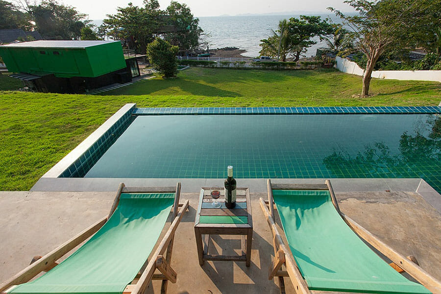 แบมบู การ์เด้น เฮ้าส์ ที่พักแบบเหมาหลังสไตล์วิลล่า โอบล้อมไปด้วยธรรมชาติที่อุดมสมบูรณ์ มาพร้อมกับบรรยากาศสุดร่มรื่นและส่วนตัว ที่สำคัญมีวิวทะเลสวยๆ ให้ชมตลอดการเข้าพัก โดยบ้านพักจะตั้งอยู่บนเนินเขา โดยจะแบ่งออกเป็น 3 แบบ คือ The Bamboo Villa บ้านพักสไตล์ตู้คอนเทนเนอร์ สามารถเข้าพักได้ 8 คน แบบ The Green Villa บ้านพักสำหรับ 6 คน และแบบ The Cottage บ้านพักทรงเอเฟรมสุดเก๋ สามารถเข้าพักได้ถึง 12 คน ภายในมาพร้อมกับห้องพักและโซนพักผ่อนที่ถูกแบ่งเป็นสัดส่วน และอุปกรณ์ทำครัว และเตาปิ้งย่างครบครัน เหมาะกับการมาพักผ่อนแบบกลุ่มเพื่อนที่ตั้งใจมาปาร์ตี้และต้องการความเป็นส่วนตัว
