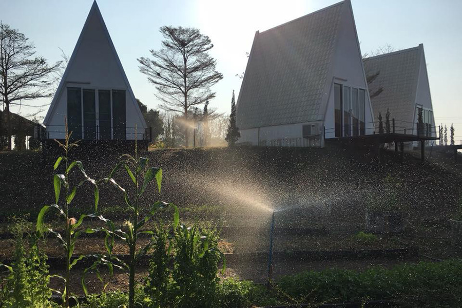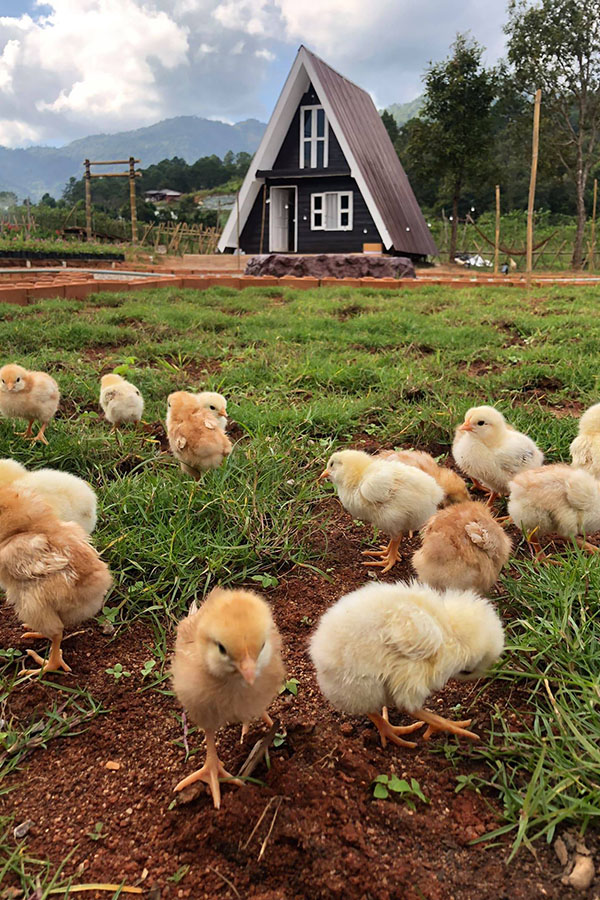 บ้านปลายดอย ฟาร์มเสตย์ที่กำลังฮอตฮิตในเชียงใหม่ขณะนี้ ด้วยโลเคชั่นบนดอยอินทนนท์ ที่ใครๆ ต่างก็รู้ว่ามีวิวทิวทัศน์ที่สวยงามแถมอากาศยังเย็นสบาย บ้านปลายดอย มีความน่ารักด้วยลักษณะบ้านทรง A Frame หลังเล็กเหมือนกะท่อมกลางป่า ภายในตกแต่งด้วยโทนสีขาวนวลตา ไม่ว่าจะอยู่มุมไหนก็หยิบกล้องขึ้นมาแชะภาพได้อย่างต่อเนื่อง มีทั้งหมด 4 หลัง ทั้งหลังใหญ่ที่พักได้ 4 คนและหลังเล็กพักได้ 2 คน โดยรอบมีฟาร์มเล็กๆ รายล้อม ไม่ว่าจะเป็น สวนผัก สวนดอกไม้ ฟาร์มสัตว์อย่าง ไก่ แพะ กระต่าย ตกเย็นมาก็ล้อมวงกินหมูกระทะใต้บรรยากาศแบบแคมป์ปิ้งระยิบระยับด้วยไฟประดับ ใครที่มาในช่วงหน้าฝนหรือหน้าหนาวก็จะเจอกับหมอกบางๆ ต้อนรับในยามเช้า หรือโชคดีไปตอนฟ้าเปิดก็อาจจะเจอกับหมู่ดาวเต็มท้องฟ้าก็ได้นะ