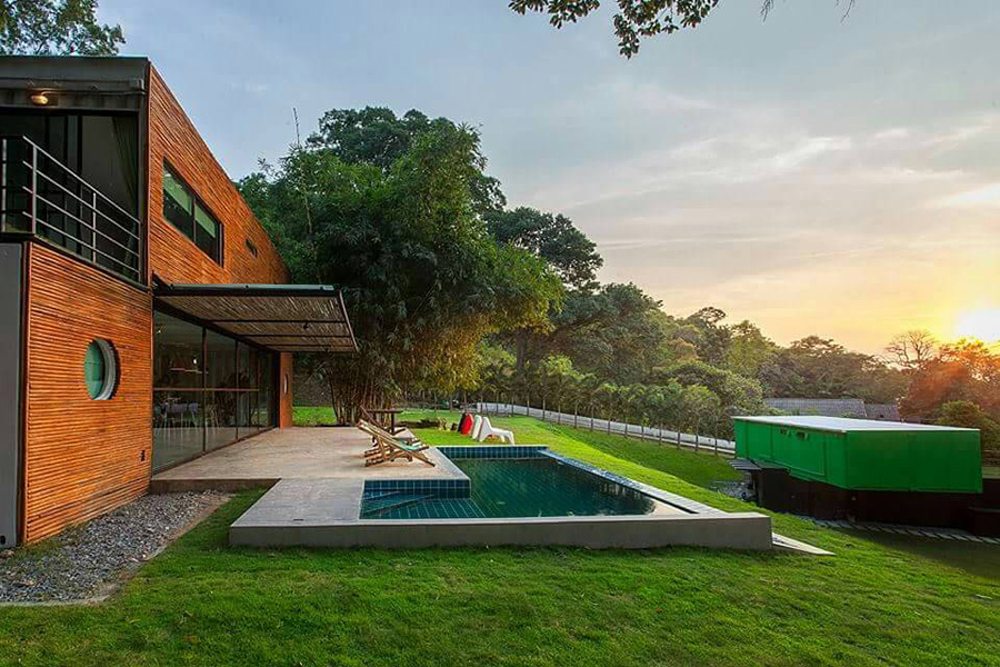 บ้านพักพูลวิลล่าในสวนบรรยากาศเงียบสงบ แบมบูการ์เด้นท์เฮ้าส์ ตั้งอยู่บนเนินเขาวนอุทยานแหลมสิงห์มองเห็นวิวอ่าวยาง ในบ้านพักหลังใหญ่มีห้องครัว ห้องนั่งเล่น สนามหน้าบ้านและสิ่งอำนวยความสะดวกครบเหมือนอยู่บ้านส่วนตัว เหมาะสำหรับพาครอบครัวหรือแก๊งค์เพื่อนมาพักผ่อนทำกิจกรรมต่างๆ ร่วมกัน สามารถปิ้งย่างทำบาร์บีคิวเป็นปาร์ตี้เล็กๆ หน้าบ้านได้อย่างสุขสันต์ โดยแบมบูการ์เด้นท์จะมีบ้านพักทั้งหมด 3 แบบด้วยกัน แบบแรกคือ The Bamboo Villa ลักษณะคล้ายตู้คอนเทนเนอร์ที่ภายนอกตกแต่งด้วยไม้ไผ่เป็นบ้านพักหลังใหญ่ 2 ชั้น 4 ห้องนอน สามารถพักได้ 8 คน แบบต่อมาคือ The Green Villa บ้าน 2 ชั้นสำหรับ 6 คน โดดเด่นด้วยสีเขียวแจ่มของตัวบ้านกลมกลืนกับหญ้าสีเขียว และแบบสุดท้ายคือ The Cottage บ้านทรงเอเฟรมหลังใหญ่สามารถพักได้ถึง 12 คน ชั้นบนสุดสามารถมองเห็นวิวที่สวยงามและโรแมนติก โดยบ้านพักทุกแบบจะมีพูลวิลล่าส่วนตัวพร้อมทั้งบริเวณรอบบ้านที่กว้างขวาง เหมาะแก่การมาใช้เวลาช่วงวันหยุดที่แสนสบาย