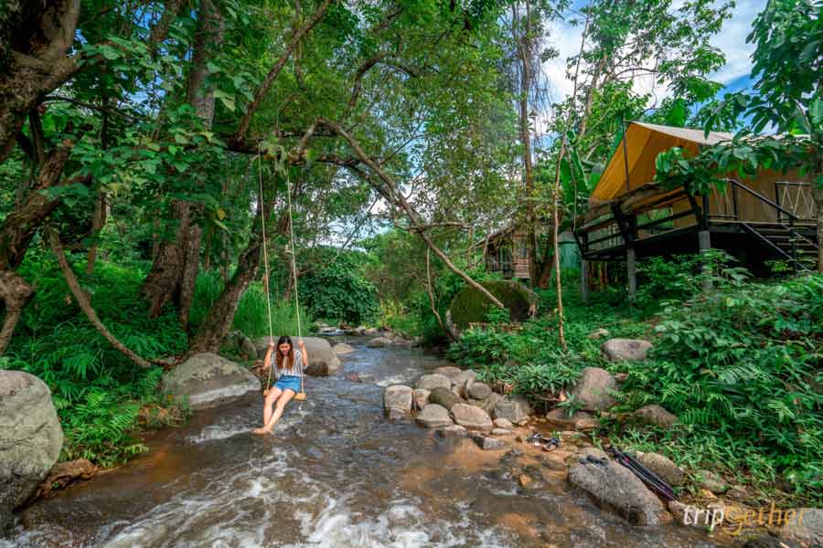 พาทุกคนมาเช็คอินพิกัดแรกกันเลย บ้านธารกล่อม & The River Whisper ที่พักบ้านต้นไม้ ที่ซ่อนตัวอยู่ท่ามกลางขุนเขาและลำธารใส บรรยากาศสงบเงียบเหมาะกับการพักผ่อน ตัวบ้านถูกออกแบบให้กลมกลืนไปกับธรรมชาติป่าเขียวขจี ใช้ไม้เป็นวัสดุหลัก ที่สำคัญคือมีให้เลือกหลายสไตล์สุดๆ ทั้ง บ้านเป็นหลัง บ้านต้นไม้ และ เต็นท์กระโจม ให้ความรู้สึกเหมือนกับได้ใช้ชีวิตอยู่ในเทพนิยายเลยล่ะ