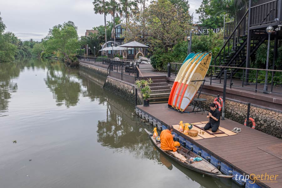 ขยับมาใกล้กรุงเทพฯมากขึ้น พามาเช็คอิน ดำเนินพวา รีสอร์ท บ้านต้นไม้ (Damnernpawa Resort) สัมผัสความเป็นเอกลักษณ์ริมน้ำคลองบางน้อย โอบล้อมไปด้วยธรรมชาติสุดกรีน ภายในที่พักจะแบ่งออกเป็น 2 โซนด้วยกัน คือ โซนโรงแรมและโซนรีสอร์ท ซึ่งห้องพักที่ถือเป็นไฮไลท์ของที่นี่เลยก็คือ บ้านต้นไม้ จากุซซี่ ในโซนรีสอร์ท เป็นห้องพักแบบพูลวิลล่าส่วนตัวที่อยู่ติดกับริมน้ำ ภายในเป็นห้อง 2 ชั้น มีอ่างอาบน้ำระบบจากุซซี่แบบเอาท์ดอร์พร้อมวิวธรรมชาติรอบด้าน นอกจากนี้ทางที่พักยังมีกิจกรรมให้ทำเพียบ ทั้ง ตักบาตรทางน้ำ กิจกรรมปั่นจักรยาน กิจกรรมพายเรือแคนู พายซับบอร์ด หยุดนี้ใครหาที่เที่ยวที่กินและที่พักแบบครบจบต้องไม่พลาดที่นี่