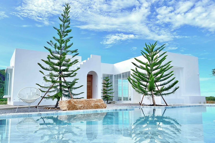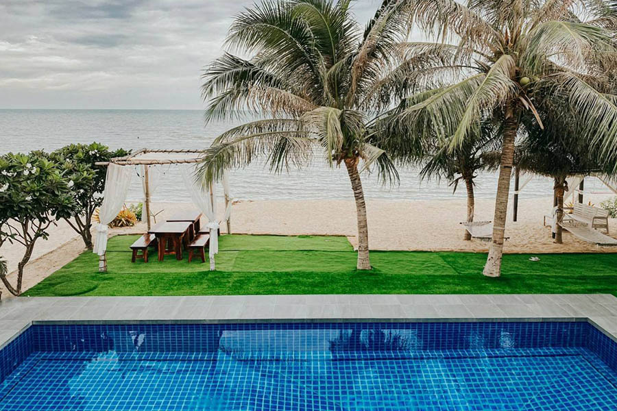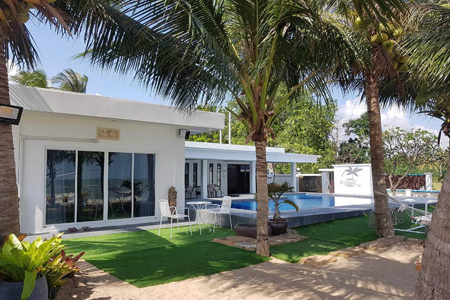 บ้านริมทะเลกุยบุรี บ้านพักตากอากาศริมทะเลสุดชิลล์ ในอำเภอกุยบุรี เป็นลักษณะบ้านหลังใหญ่สีขาวสไตล์โมเดิร์น ขนาดชั้นเดียว พร้อมดาดฟ้าสำหรับรับลมชมวิว ภายในมี 3 ห้องนอน 2 ห้องน้ำ และห้องโถง สามารถประกอบอาหารหรือปิ้งย่างได้ หน้าบ้านมีสระว่ายน้ำ บรรยากาศส่วนตัวเหมาะสำหรับครอบครัวสุดๆ ใครอยากนอนริมทะเลเสมือนเป็นหาดส่วนตัวแบบนี้แนะนำบ้านริมทะเลกุยบุรีเลย!