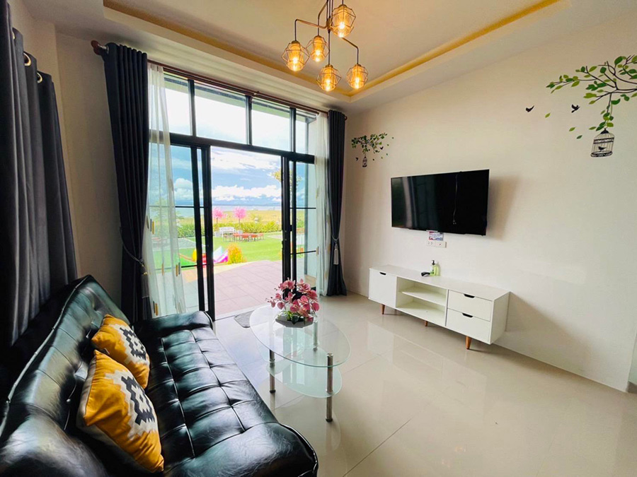 ใครยกแก๊งค์มาเที่ยวแล้วอยากนอนเหมาหลังต้องมา บ้านรักษ์ริมน้ำ ที่พักริมเขื่อนสิริธรมาในสไตล์นอร์ดิก ตัวบ้านมีพื้นที่ใช้สอยเยอะ แบ่งออกเป็น 4 ห้องนอน 4 ห้องน้ำ และบ้านสามารถรองรับคนได้มากถึง 23 คน ในบ้านมีสิ่งอำนวยความสะดวกครบครัน รวมถึงมีห้องครัวพร้อมอุปกรณ์ ไม่ว่าจะเตาปิ้งย่าง ถ้วยชาม ตู้เย็น ชุดหม้อนึ่ง ไมโครเวฟ ถังน้ำแข็ง นอกจากนี้ยังมีคาราโอเกะ เรียกได้ว่าจัดเต็มเอาใจสายปาร์ตี้สุดๆ ส่วนสนามหน้าบ้านก็มีพื้นที่กว้างขวางสามารถนั่งเล่น ทำเป็นลานกิจกรรม หรือเป็นลานกางเต็นท์ก็ได้นะ บอกเลยว่าถ้ามาเที่ยวกันเป็นกลุ่มใหญ่และอยากสนุกเต็มที่ให้มาที่นี่เลย