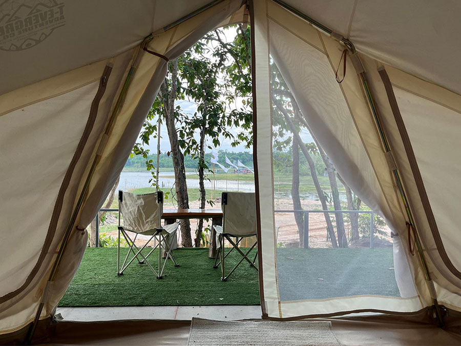Finn Camping Park แคมป์ปิ้งริมน้ำชิลล์ๆ ท่ามกลางความร่มรื่นของธรรมชาติ อีกทั้งยังสามารถเดินลงไปเล่นน้ำได้สบายๆ บ้านพักของที่นี่มีทั้งแบบเต็นท์และบ้านเป็นหลัง ในส่วนของเต็นท์มีให้เลือกทั้งแบบกระโจมแอร์ เต็นท์พัดลม และมีบริการพื้นที่กางเต็นท์ ส่วนบ้านหลังจะเป็น Fin Home และบ้านฟินฮัท ใครที่มานอนค้างคืนที่นี่ก็ไม่ต้องกังวลเรื่องอาหาร ทางที่พักมีบริการอาหารตามสั่งและหมูกระทะ รวมถึงใครอยากประกอบอาหารเองก็มีให้เช่าเตาและตะแกรงปิ้งย่างพร้อมอุปกรณ์ครบชุดด้วย