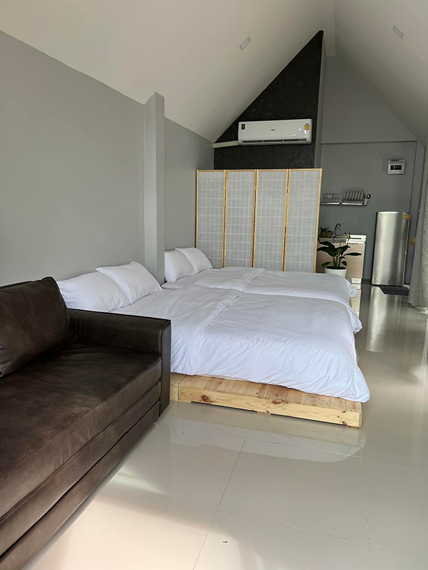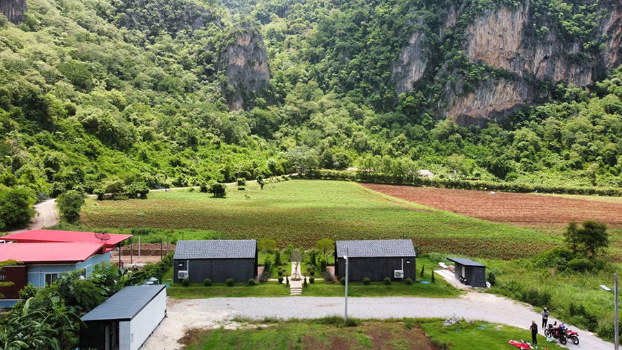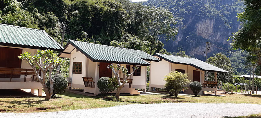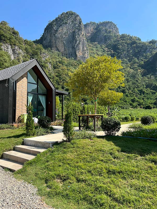 มาสัมผัสความชิลล์ท่ามกลางป่าไม้และขุนเขาที่ บ้านภูผา บรรยากาศที่พักกรีนมากๆ มองไปทางไหนก็เจอแต่ความเขียวชอุ่มของต้นไม้ เพิ่มความอันซีนด้วยพื้นหลังภูเขาหินปูนอย่างใกล้ชิด ส่วนตัวบ้านพักออกแบบอย่างเรียบง่าย เน้นสีเอิร์ทโทนที่ดูเรียบง่าย สบายตา บ้านพักแบ่งออกเป็น 2 แบบให้เลือกก็คือ บ้านพักสำหรับ 2 คนและห้องพักแบบ 6 คน เรียกได้ว่าจะมาเป็นคู่หรือมายกแก๊งค์ก็สามารถมานอนพักผ่อนและใช้เวลาด้วยกันได้ แถมในช่วงเช้าบริเวณรอบๆ ที่พักปกคลุมไปด้วยหมอกให้ฟีลต่างประเทศมากๆ เป็นอีกที่พักที่ต้องมานอนชิลล์สักคืน
