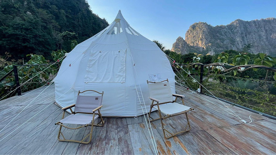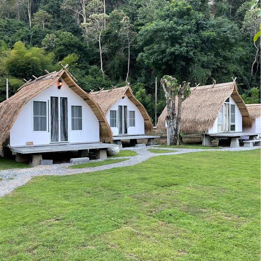 บ้านภูเขา 168 โฮมสเตย์ ที่พักสไตล์ glamping น่ารักๆ ที่ถูกโอบล้อมท่ามกลางความร่มรื่น มีลานกว้างให้ได้ทำกิจกรรมหรือจะเดินชิลล์ๆ สัมผัสธรรมชาติก็ฟีลดีมาก บ้านพักของที่นี่จะเป็นหลังๆ มีให้เลือกหลายแบบ ไม่ว่าจะเป็นบ้านกระต๊อบ เต็นท์กระโจม บ้านไม้ไผ่ ซึ่งแต่ละหลังมุงด้วยหลังคาหญ้าแฝกให้ฟีลบาหลีสุดๆ นอกจากจะนอนสบายแล้ว วิวทิวทัศน์ที่ได้ก็มีความสวยงามที่ต่างกันไปทุกช่วงเวลา อย่างในตอนดึกใครชอบดูดาว ถ้าท้องฟ้าเปิดรับรองว่าได้เห็นดาวแบบเต็มๆ ตา ส่วนในยามเช้าเพียงเปิดประตูออกมาก็จะเจอกับสายหมอกคลอเคลียขุนเขา ตรงนี้แหละที่ใครๆ ก็บอกว่าเหมือนอยู่ต่างประเทศมาก