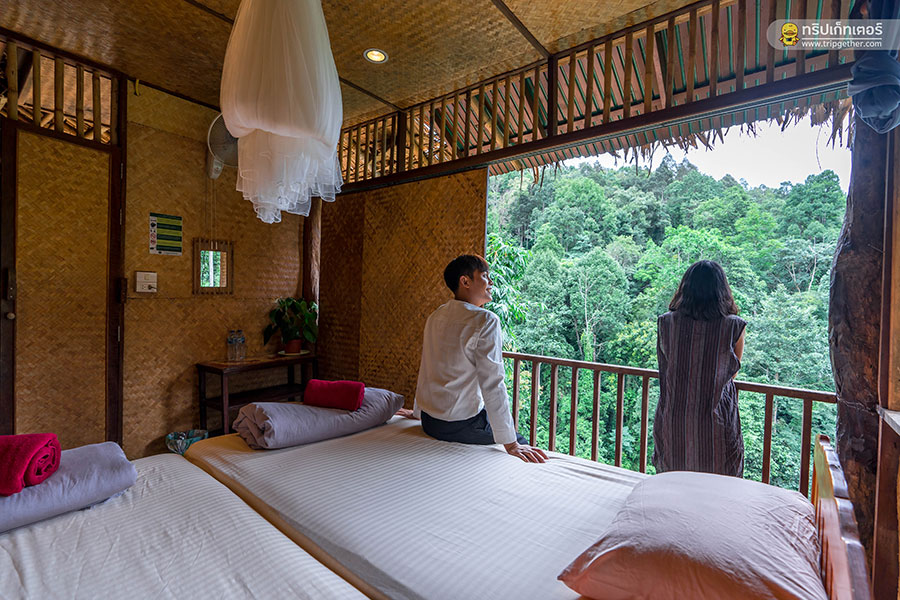 พักผ่อนแบบ Hideaway ท่ามกลางป่าใหญ่ใน อ.เชียงดาว กับ บ้านต้นไม้แม่แมะ (Tree House Hideaway) ด้วยบ้านพักที่ออกแบบเหมือนบ้านต้นไม้ โอบล้อมไปด้วยป่าเขาอันเขียวชอุ่ม ให้ความรู้สึกเหมือนมานอนอยู่กลางป่ากลางเขา ทั้งยังมีธารน้ำไหลที่จะคอยกล่อมให้นอนหลับสบายในยามค่ำคืน เมื่อเดินเข้าไปถึงในตัวบ้านแล้วมองออกมาจะได้บรรยากาศของธรรมชาติแบบจัดเต็มสุดๆ ทั้งตัวห้องพักเองยังมีหน้าต่างใหญ่ สามารถนอนมองวิวได้จากเตียงอีกด้วย ภายในห้องพักตกแต่งเรียบง่ายด้วยไม้ไผ่ โชว์พื้นผิวธรรมชาติกลมกลืนกับบรรยากาศโดยรอบเป็นอย่างดี สำหรับใครที่อยากผ่อนคลายก็สามารถลงมาใช้เปลตาข่ายในพื้นที่ส่วนกลาง นอนมองวิวแบบนี้ก็ชิลล์ดีเหมือนกัน