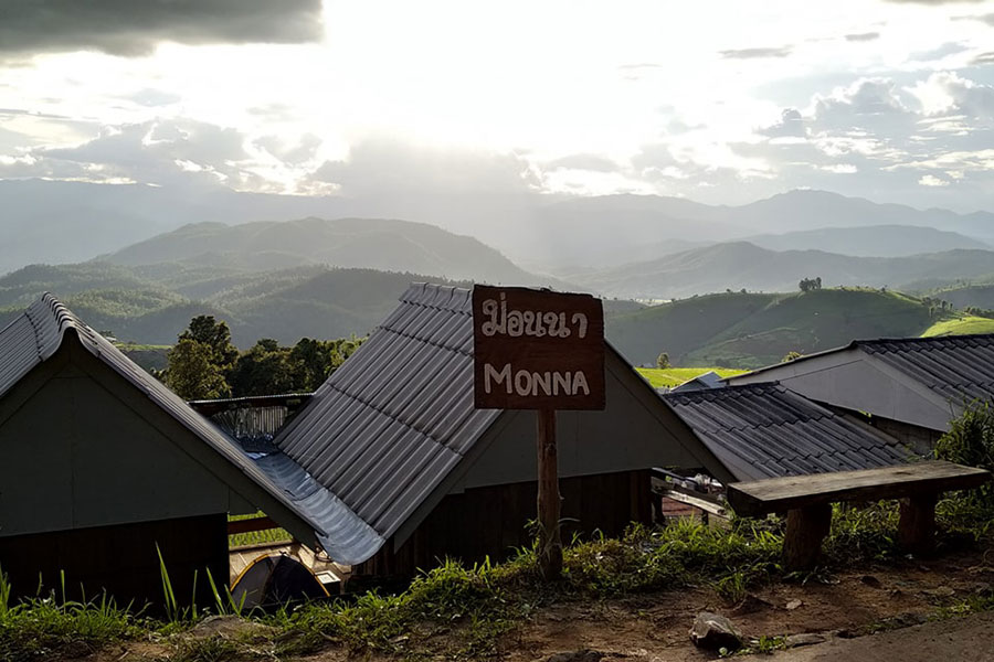 ม่อนนา ป่าบงเปียง (Monna Pabong Peang Homestay) อีกหนึ่งที่พักสวยวิวนาขั้นบันไดที่แม่แจ่ม อีกหนึ่งสถานที่ฮอตฮิตของเชียงใหม่ในช่วงหน้าฝน ที่คนนิยมเดินทางไปเที่ยวพักผ่อนในบรรยากาศสบายๆ ชมวิวนาขั้นบันไดแบบฟินๆ ที่นี่มีห้องพักขนาดกำลังดี ตกแต่งด้วยงานไม้ไผ่เรียบง่าย น่าชวนมานอนสัมผัสอากาศเย็นฉ่ำใจ ยิ่งในช่วงเช้าตื่นมาก็ได้สัมผัสกับความสวยงามของหมอกขาวที่ฟุ้งไปทั่วขุนเขา ให้ความรู้สึกผ่อนคลายสุดๆ บริเวณหน้าห้องพักยังมีระเบียงให้ออกมานั่งมองวิวได้อีกด้วย สำหรับสาวๆ ที่ชอบถ่ายรูปต้องถูกใจกับมุมธรรมชาติสวยๆ อย่างแน่นอน