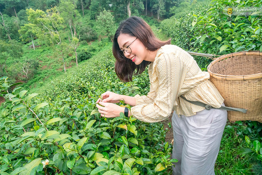 เริ่มต้นที่ ไร่ชาลุงเดช (Lung Dech Tea Farm) ที่พักสวยในไร่ชาที่มาพร้อมห้องพักวิวดีตั้งอยู่บนเนินเขา ทำให้มองเห็นวิวไร่ชากับขุนเขาได้แบบ 180 องศา ไม่ว่าจะหันไปมองทางไหนก็สวยถูกใจไปหมด บ้านพักมีทั้งหมด 2 หลัง โดยจะแยกโซนให้ความเป็นส่วนตัวได้เป็นอย่างดี สำหรับใครที่เป็นสายแคมป์ปิ้งกางเต็นท์ก็สามารถสอบถามกับลุงเดชได้โดยตรง นอกจากจะพักผ่อนพร้อมวิวสวยแล้ว ยังสามารถออกมานั่งจิบชาอุ่นๆ สัมผัสลมหนาวและมองหมอกขาวฟุ้งได้อีกด้วย ในส่วนของเมนูที่แนะนำเลยว่ามาเยือนที่นี่แล้วต้องสั่ง คือ ยอดชาทอดกรอบ, ยำใบชาปลากระป๋อง และไข่เจียวยอดชา ส่วนสายหวาน ที่นี่ก็มีขนมให้ลิ้มลอง อย่าง เค้กชาเขียว เครปเค้ก และอีกหลากหลายเมนู แนะนำว่าให้ไปเที่ยวช่วงหน้าฝน จะได้สัมผัสกับลมหนาวพร้อมความชุ่มฉ่ำแบบเขียวชอุ่ม รับรองว่าฟินแน่นอน