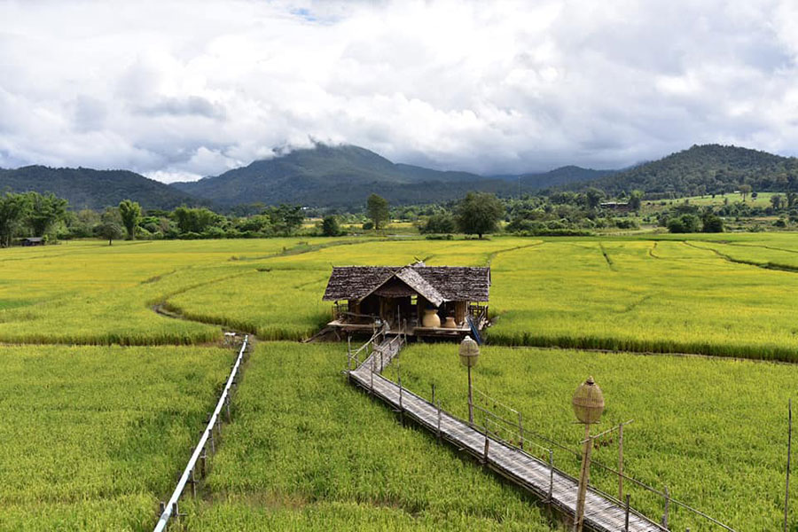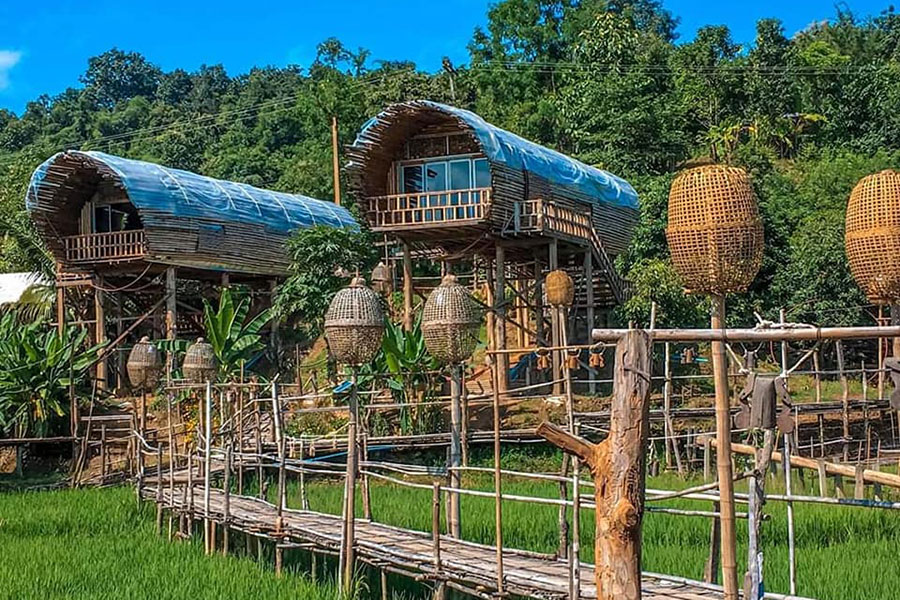 ปิดท้ายกันที่ ปงอินรักษ์ ฟาร์มสเตย์ (Ponginrak FarmStay) ที่พักสไตล์ฟาร์มสเตย์สุดชิลล์ในบรรยากาศสบายๆ ท่ามกลางธรรมชาติของภูเขาและท้องนา ให้คุณได้มาพักผ่อนสัมผัสชีวิตเรียบง่าย มองวิวหลักล้านในแบบที่หาไม่ได้ในเมืองหลวง พร้อมรับประทานผักผลไม้ปลอดสารพิษ อาหารพื้นถิ่นแบบไม่เหมือนใคร ห้องพักเป็นกระท่อมน้อยเน้นโชว์พื้นผิวไม้ธรรมชาติ เข้ากันได้ดีกับบรรยากาศโดยรอบ ทั้งยังมีมุมถ่ายรูปสวยๆ เพียบ เป็นอีกหนึ่งที่พักสุดสโลว์ไลฟ์ ที่ใครได้มาพักแล้วจะต้องหลงใหลในความเรียบง่ายและเงียบสงบของที่นี่อย่างแน่นอน