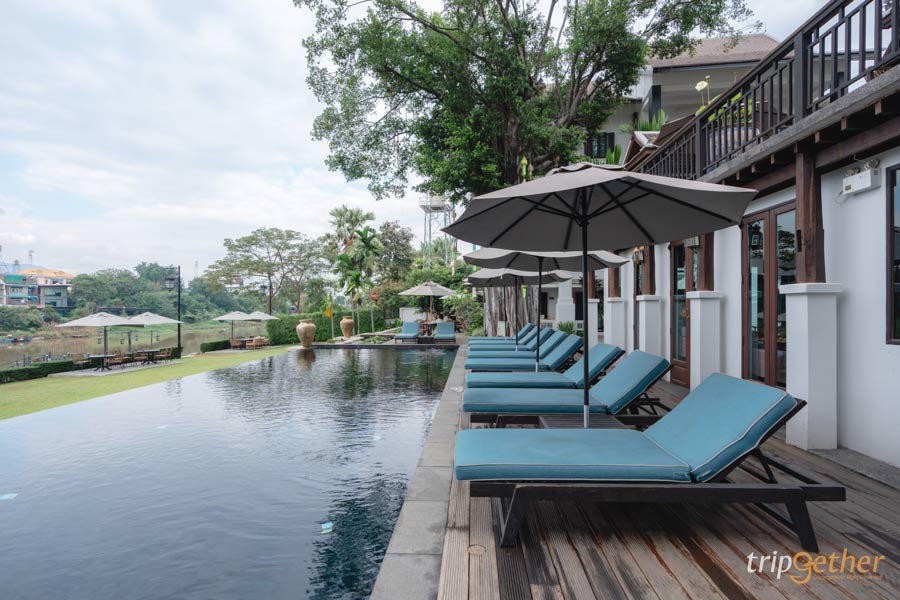 ถัดมาที่อีกหนึ่งพิกัด ที่พักเชียงใหม่ใกล้สนามบิน ใจกลางเมือง บุรีศรีปิง ริเวอร์ไซด์ รีสอร์ท แอนด์ สปา (Buri Sriping Riverside Resort and Spa) มาพร้อมกับวิวแม่น้ำปิงแบบพาโนรามา บรรยากาศภายในเต็มไปด้วยความร่มรื่น เหมาะกับการพักผ่อน บวกกับดีไซน์โรงแรมดูเรียบง่ายและยังคงความหรูหราด้วยสไตล์โคโรเนียลล้านนา สวยงามลงตัวมาก ในส่วนห้องพักมีทั้งหมดจำนวน 36 ห้อง มีให้เลือกมากถึง 7 รูมไทป์เลยทีเดียว ภายในห้องพักเพียบพร้อมไปด้วยสิ่งอำนวยความสะดวกที่ครบครัน นอกจากนี้บริเวณรีสอร์ทยังแวดล้อมไปด้วยสวนสวยและต้นไม้ใหญ่มีสระว่ายน้ำระบบเกลือพร้อมกับวิวของแม่น้ำปิงที่มีดอยสุเทพเป็นฉากหลัง อีกทั้งยังสามารถผ่อนคลายร่างกายและจิตใจจากความเหนื่อยล้าด้วยสปาสุดฟิน