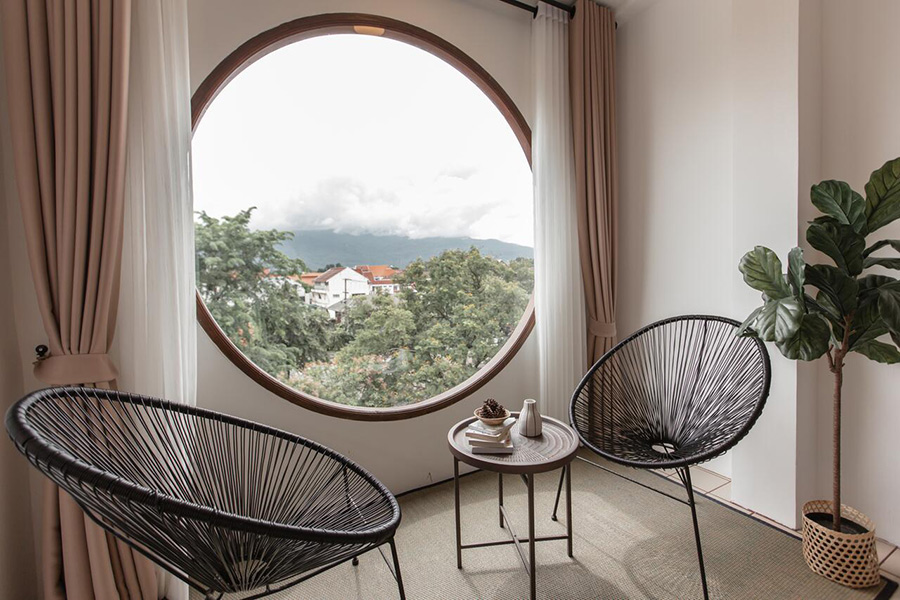 โรงแรมม่วน เชียงใหม่ (MUAN Hotel Chiang Mai) ไปเที่ยวพักผ่อนม่วนๆ ใกล้ถนนคนเดินท่าแพเพียงแค่ก้าวเท้าออกจากโรงแรมก็ได้กินของอร่อยแล้ว สำหรับห้องพักที่นี่บอกเลยวิวเด็ดมากมีห้องให้เลือกหลากหลายทั้ง Grand Deluxe Mountain View ห้องดอยปุยที่มาพร้อมหน้าต่างทรงกลมมองเห็นวิวขุนเขาสวยเคล้าสายหมอกยามเช้าดีต่อใจ Superior Mountain View ห้องภูเขาที่ตกแต่งเรียบง่ายสไตล์มินิมอลสวยชิคดีต่อใจแน่นอน ตามมาด้วย Deluxe Family Room, Deluxe Double Room, Superior Double Room, Deluxe Mountain with Balcony, Twin Room, 6-Bed Dorm, 8-Bed Dorm และ 12-Bed Dorm ไม่ว่าจะมาพักเดี่ยว พักคู่ หรือพักเป็นกลุ่มก็ชิลล์แน่นอน