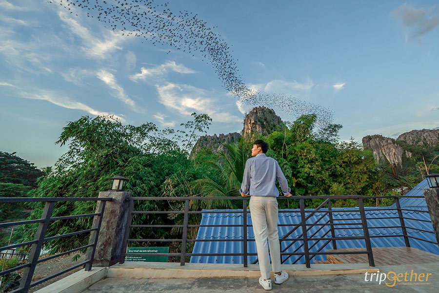 จุดชมวิวค้างคาว จุดเช็คอินชื่อดังของที่เที่ยวเนินมะปรางที่เรียกได้ว่าเป็น Unseen Thailand แห่งหนึ่ง โดยจุดชมวิวนี้ตั้งอยู่กลางหมู่บ้าน มีความร่มรื่นจากต้นไม้น้อยใหญ่และสระน้ำธรรมชาติที่ให้บรรยากาศสบายๆ เหมาะกับการมาเดินเล่นชิลล์ๆ และแน่นอนว่าไฮไลท์ของที่นี่ก็คือ ภาพของฝูงค้างคาวนับแสนที่บินออกมาจากถ้ำในช่วงเย็นเป็นสายสีดำตัดกับภาพท้องฟ้าเป็นภาพธรรมชาติอันน่าตื่นตาตื่นใจที่ใครก็ต้องมาสัมผัสสักครั้ง ซึ่งเวลาที่ฝูงค้างคาวเริ่มออกมาหาอาหารจะเป็นเวลาประมาณ 17.00 น. ดังนั้นแนะนำเลยว่าถ้าใครอยากเก็บภาพฝูงค้างคาวให้มาเตรียมตัวให้พร้อมก่อนจะดีกว่า