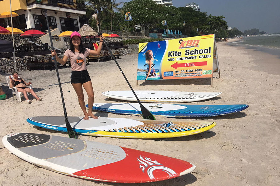 หัวหินก็มี SUP Board สถานที่เช็คอินสุดปังสำหรับคนรักกีฬาทางน้ำ ที่นี่มีบริการศูนย์เล่น SUP Board ติดชายหาด เปิดให้บริการทุกวัน พร้อมให้บริการกิจกรรมทางน้ำแบบครบวงจร สามารถจัดกลุ่มมาเล่นได้หรือจะทัวร์เองแบบส่วนตัวก็ดีต่อใจแน่นอน สำหรับใครที่มาเที่ยวหัวหินแล้วอยากมาเช็คอิน SUP Board ต้อนรับปีใหม่ พร้อมถ่ายรูปสวยๆ ไว้เป็นความทรงจำชิคๆ ใน IG ก็ต้องแวะมาจัดกันที่ KBA – KiteBoarding Asia หัวหิน หรือจะไปเที่ยวย่านไหนก็ลองแวะไปเพราะ KBA – KiteBoarding Asia มีหลายสาขาทั่วไทยทั้ง พัทยา, ภูเก็ต, ปราณบุรี, เกาะพะงัน, เกาะสมุย, เกาะเต่า (ตามหน้าของลม), ระยอง (ตามหน้าลม) ใครใกล้ที่ไหนก็ไปที่นั่น!