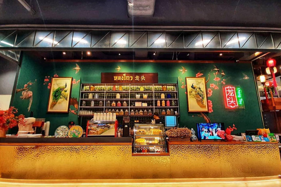 หลงโถวคาฟ่ คาเฟ่สไตล์จีนร่วมสมัยในย่านเยาวราช ภายในร้านเน้นโทนสีเขียวเป็นหลัก มีกลิ่นอายวินเทจเบาๆ พร้อมกับดีไซน์การแต่งร้านที่แปลกใหม่ช่วยสร้างบรรยากาศให้ดูสนุกสนานและเก๋ไก๋มากๆ ไม่ใช่แค่ร้านสวยเท่านั้น อาหารแต่ละจานยังมีความประณีตและเป็นเอกลักษณ์ ซึ่งเมนูติ่มซำที่อยากแนะนำเลยก็มี ขนมจีบหลงโถว ขนมจีบไซส์ยักษ์ที่อัดแน่นด้วยเนื้อหมูสับรวมกับใบกุ้ยช่าย รสชาติกลมกล่อม ต่อมาเป็นซาลาเปาไข่เค็มลาวา แป้งกรอบนอกนุ่มใน พร้อมกับไส้ลาวาแบบเยิ้มๆ กินตอนร้อนๆ คือดีมากเลย นอกจากนี้ยังมีชุดอาหารหลงโถว ที่เสิร์ฟมาเป็นเข่งขนาดใหญ่พร้อมกับเซ็ตอาหารจานเล็กๆ ดูน่ารักและแปลกตามากๆ