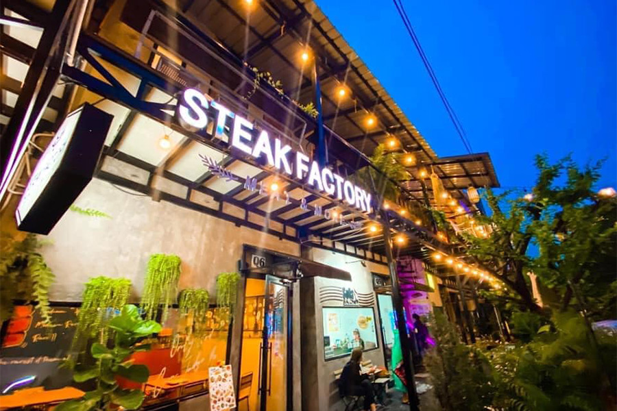 Steak Factory Wutthakat ร้านนั่งชิลล์ฝั่งธนที่มีครบทั้งเมนูอาหารและเครื่องดื่ม ใครเป็นเลิฟสเต๊กห้ามพลาดด้วยประการทั้งปวงเพราะที่นี่มีเมนูเด็ดๆ น่าโดนอยู่เพียบ มีทั้งเนื้อเกรดพรีเมี่ยมที่ได้กินคู่กับเครื่องดื่มเย็นๆ บอกเลยว่าฟินมาก ภายในร้านมีสองชั้นให้เลือกนั่ง ด้านล่างจะเป็นห้องแอร์นั่งเย็นสบาย ส่วนชั้นบนจะเป็นแบบ Openair ชวนคนรู้ใจมานั่งชมวิวกรุงเทพยามค่ำคืนกันชั้นบน รับรองว่าบรรยากาศโรแมนติกสุดๆ