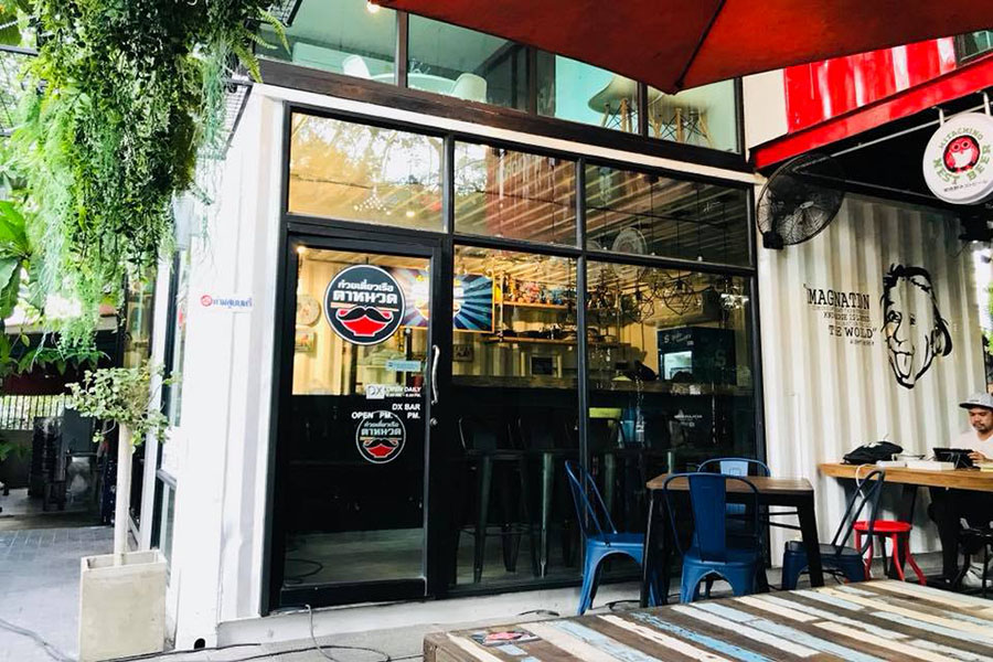 ดีเอ็กซ์เพลย์กราวด์ สไตล์อินดัสเทรียลลอฟท์ ที่นำเอาตู้คอนเทนเนอร์มาดัดแปลงตกแต่ง ในส่วนของอินดอร์คุณจะได้นั่งชิคๆ ในตู้คอนเทนเนอร์เลย ซึ่งภายในมีบาร์ไม้ยาวและโต๊ะเก้าอี้เล็กๆ พร้อมกับตู้ที่โชว์เครื่องดื่มกับเบเกอรี่เอาไว้อย่างล่อตาล่อใจ สำหรับโซนเอ้าท์ดอร์ก็น่านั่งไม่แพ้กันท่ามกลางต้นไม้ใบหญ้าสามารถเลือกมุมโปรดได้ตามอัธยาศัย ส่วนเมนูที่หลากหลายของที่นี่มีทั้งเซตอาหารเช้าแบบง่ายๆ อาหาร ของทานเล่น เครื่องดื่มชากาแฟ ขนมหวาน และช่วงเย็นก็สั่งเบียร์ มานั่งดื่มชิลล์ๆ ได้ ด้วยการตกแต่งที่นำเอา Quote มาเพิ่มความน่าสนใจในทั่วทุกมุมของร้าน ถือว่าดีเอ็กซ์เพลย์กราวด์ เป็นอีกร้านที่ไม่ธรรมดาเลยทีเดียว