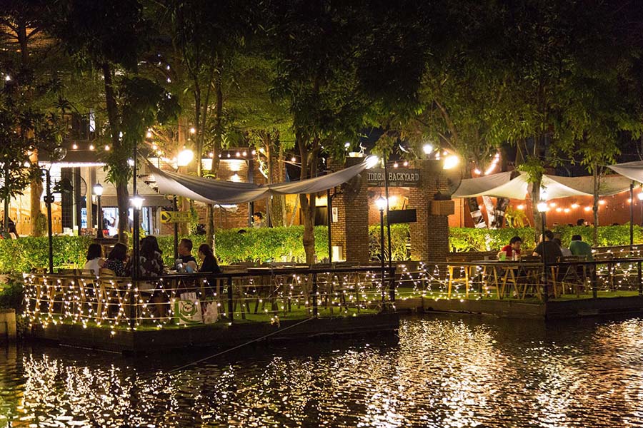 ร้านลับๆ เท่ๆ ตกแต่งสไตล์สวนหลังบ้าน ฮิดเด้นแบ็คยาร์ด ร้านน่านั่งอีกหนึ่งร้านที่มีเมนูครบทั้งอาหาร เครื่องดื่ม ชากาแฟ รวมทั้งเบียร์ ที่จะมอบความบันเทิงให้กับคุณตั้งแต่เช้ายันค่ำ ภายในร้านตกแต่งสไตล์ลอฟท์ มีผนังอิฐมอญสลับกับปูนเปลือยดิบๆ ดีไซน์ยอดนิยม แต่หลายคนมักจะชอบนั่งเอนกายที่โซนเอ้าท์ดอร์มากกว่า ด้วยบรรยากาศท่ามกลางสวนสวย ที่ถูกจัดแต่งมาอย่างดี แบ่งมุมให้นั่งเล่นอย่างหลากหลาย มีมุมที่นั่งริมน้ำด้วยนะ ในส่วนของเมนูอาหารมีทั้งไทยและเทศ พร้อมเครื่องดื่มเอาใจสายชิลล์อย่างเบียร์สดและเบียร์เป็นขวดนำเข้าจากหลายแห่ง จะมาด้วยความต้องการแบบไหน ร้าน ฮิดเด้นแบ็คยาร์ด ก็เหมาะสมทั้งนั้น ไม่ว่าจะนั่งทานอาหารไปจนถึงนั่งชิลล์ยามค่ำคืน จะมาเป็นคู่หรือเป็นแก๊งค์ที่นี่ก็เหมาะสมทุกกรณี