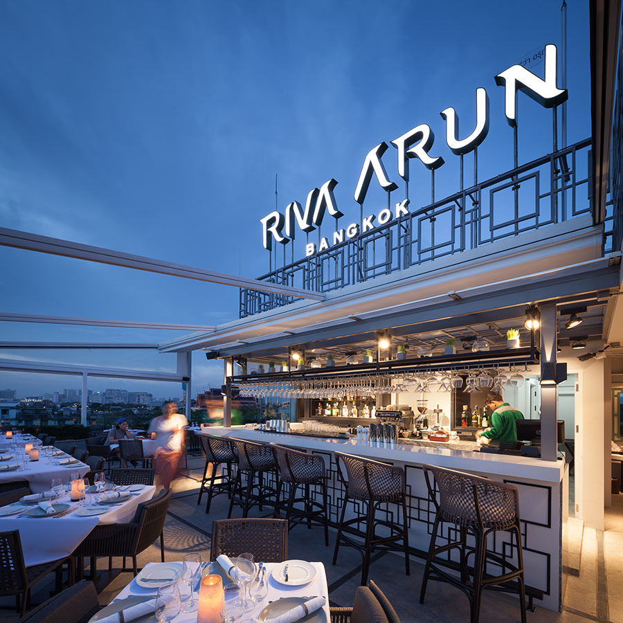 อโบฟ ริว่า รูฟท็อป บาร์ & เรสเทอรองท์ ตั้งอยู่บนชั้น 5 ดาดฟ้าของโรงแรมรีว่า อรุณ เป็นร้านอาหารแนวไทยทวิสต์ ที่ได้รับอิทธิพลความคิดสร้างสรรค์ผ่านการคัดสรรจากทั่วทุกมุมโลก ทำให้แต่ละจานมีเอกลักษณ์ไม่เหมือนใคร และเพลิดเพลินไปกับมนต์เสน่ห์มุมสูงของแม่น้ำเจ้าพระยา ความงดงามของวัดอรุณฯ รวมถึงสัมผัสวิถีชุมชนรอบๆ ตื่นตากับภาพมุมกว้างของวัดโพธิ์และวัดพระแก้ว ไฮไลท์ของที่นี่ต้องมาในช่วงเย็นที่พระอาทิตย์กำลังลับขอบฟ้า สีท้องฟ้ากลายเป็นสีพาสเทล สวยละมุนและโรแมนติดสุดๆ ไปเลย เมนูแนะนำก็มี เป็ดตุ๋นน้ำมันมะกอกกับแกงเขียวหวานใส่อะโวคาโด ที่เสิร์ฟพร้อมโรตีกรอบๆ และเมนูสันในหมูย่างเสิร์ฟพร้อมแอปเปิ้ลย่างเหล้าคาวาดอส กินกับตับห่านคำโตๆ และมันฝรั่งบดกลิ่นทรัฟเฟิล มองหาดินเนอร์สุดแสนโรแมนติก มาที่นี่ไม่ผิดหวังแน่นอน