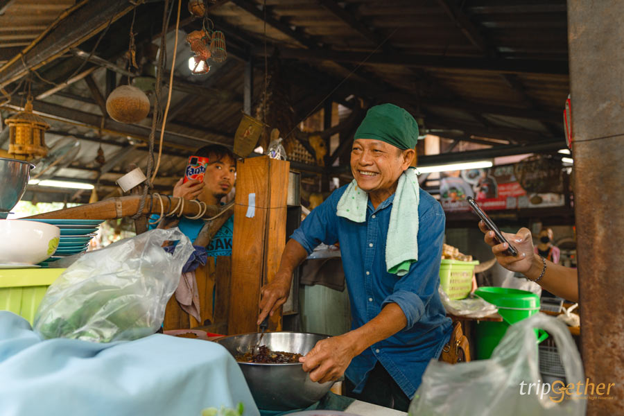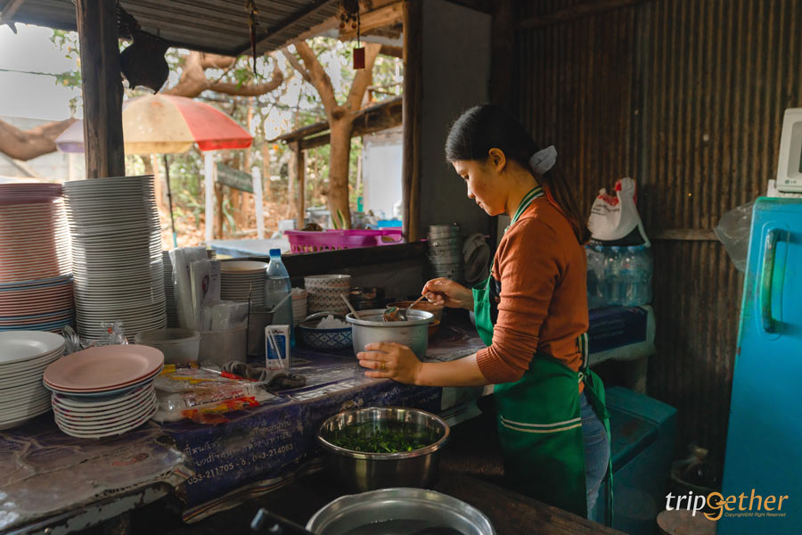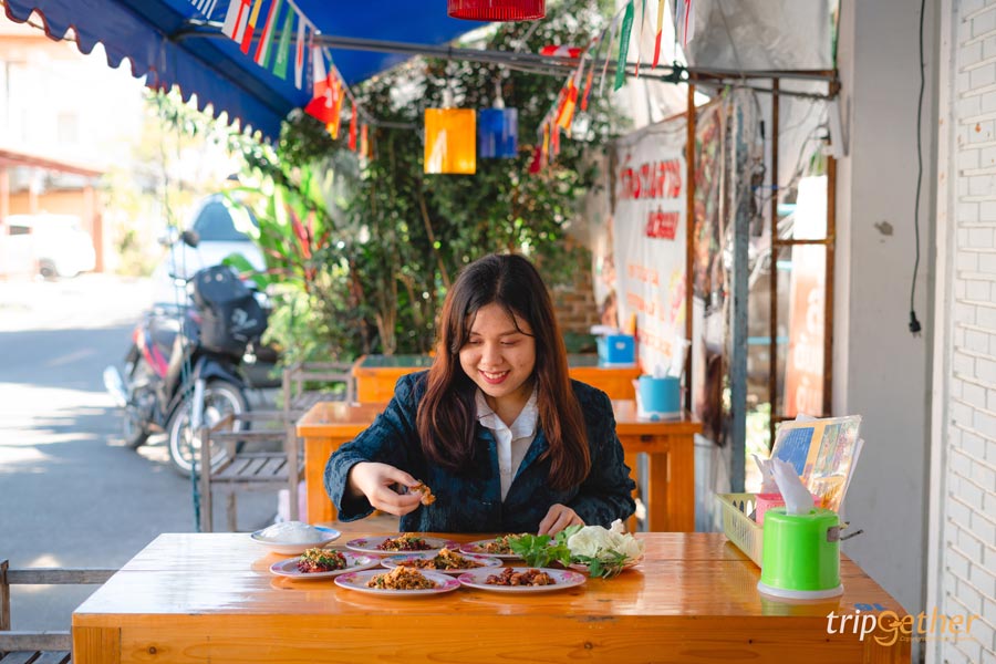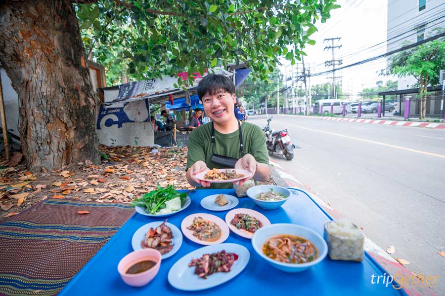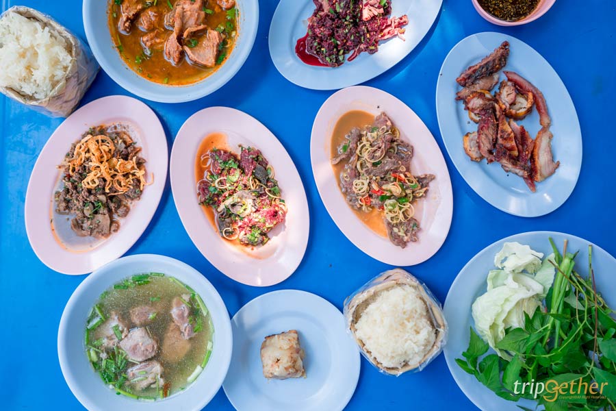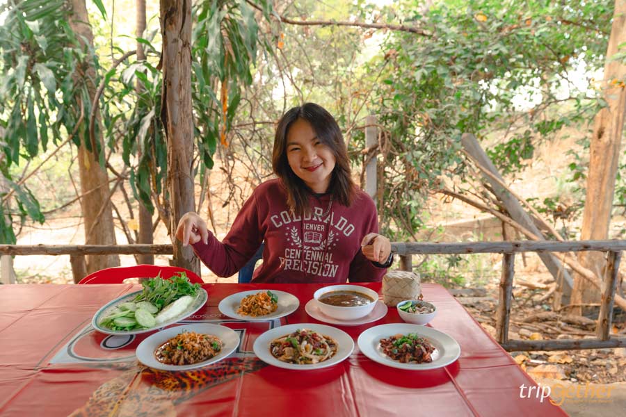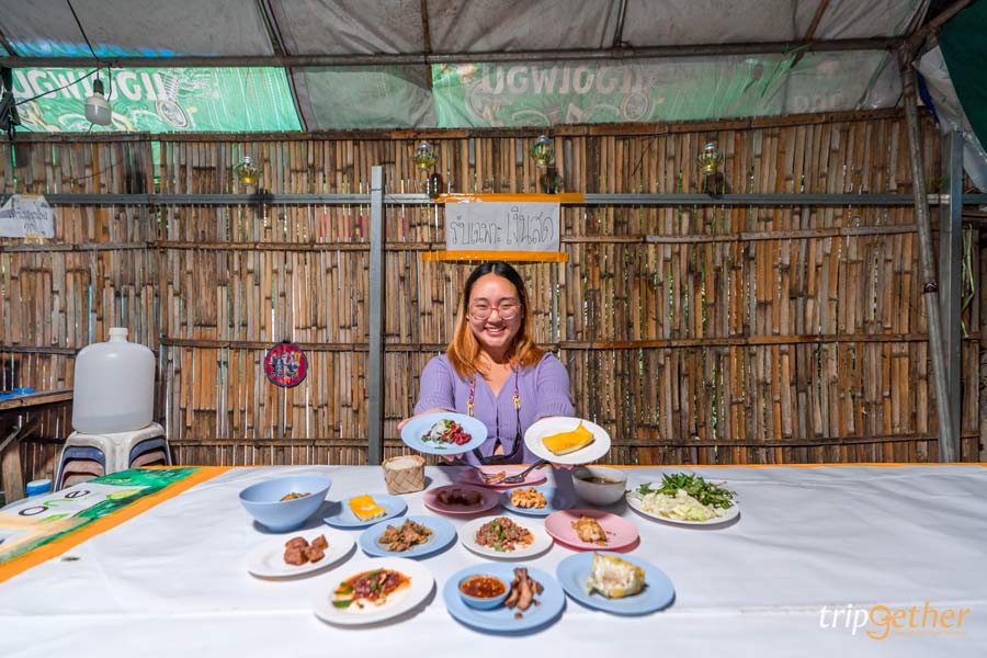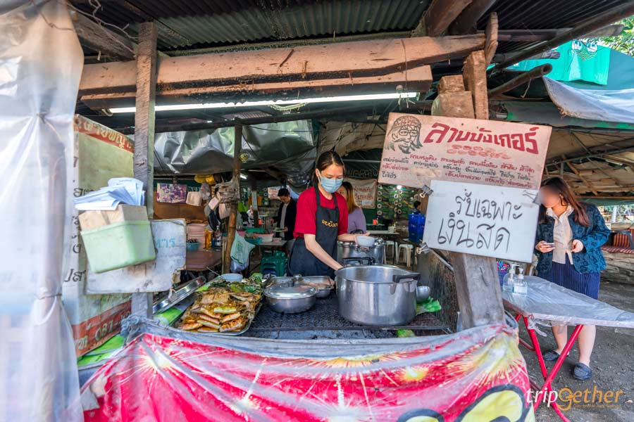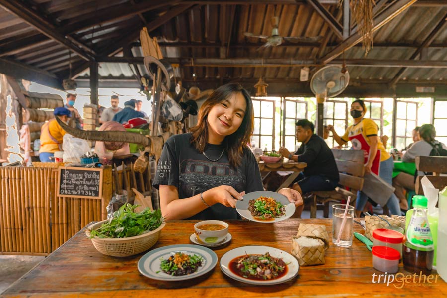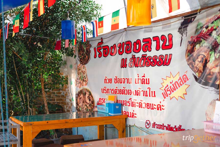 พามาปิดท้ายที่ ลาบริมคลอง ร้านลาบลับๆ ที่คนในพื้นที่แนะนำ ตัวร้านเป็นร้านเล็กๆ บรรยากาศบ้านๆ แค่บรรยากาศก็รู้เลยว่าร้านแบบนี้แหละต้องอร่อยแน่ๆ สำหรับเมนูเด็ดที่ต้องจัดมา คือ ลาบเนื้อ ลาบหมู ส้าเนื้อ ลาบปลา แกงอ่อมเนื้อ ทุกจานรสจัดจ้านเผ็ดร้อนถึงเครื่อง สั่งมากินคู่กับข้าวเหนียวร้อนๆ แกล้มด้วยปลาทอด หนังกรอบ บอกเลยว่าอร่อยฉ่ำ ฟินแสงออกปาก
