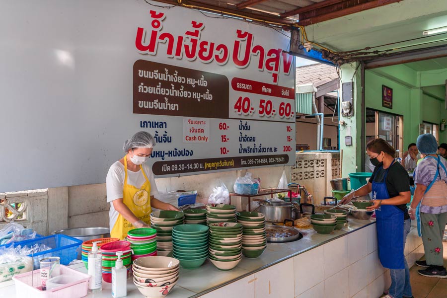 ปิดท้าย ร้านอาหารสตรีทฟู้ดเชียงราย กันที่ ร้านน้ำเงี้ยวป้าสุข อีกหนึ่งอาหารดั้งเดิมของเชียงราย ที่เปิดขายมานานกว่า 50 ปีแล้ว ตัวน้ำเงี้ยวรสเด็ดเป็นสูตรพื้นบ้านดั้งเดิม ราคาไม่แพง แถมยังให้เครื่องเยอะถึงใจอีกด้วย บอกเลยว่าเป็นอีกหนึ่ง ร้านอาหารสตรีทฟู้ดเชียงราย ที่สายกินสายเที่ยวทุกคนไม่ควรพลาด ที่จะแวะไปลิ้มลองความอร่อย