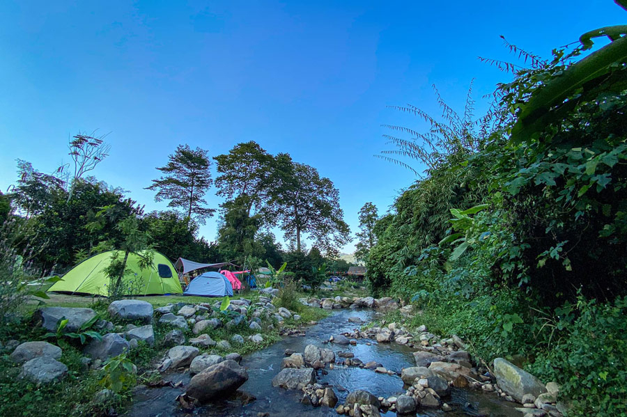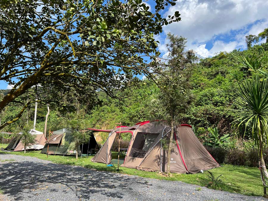 เริ่มกันที่ Butterfly Camping ลานกางเต็นท์ท่ามกลางธรรมชาติ มีภูเขาล้อมรอบ แถมยังอยู่ติดกับริมลำธาร เพื่อให้แคมป์เปอร์ที่มากางเต็นท์นอนได้ฟังเสียงน้ำไหล เสียงธรรมชาติ เสพอากาศดีๆ เย็นสบาย มีโซนกางเต็นท์ทั้งในสวนและริมลำธาร และถ้านักท่องเที่ยวคนไหนไม่มีอุปกรณ์เต็นท์แต่อยากมาลองสัมผัสบรรยากาศแคมป์ปิ้งที่ Butterfly Camping มีเต็นท์และอุปกรณ์ต่างๆ ให้เช่า ในส่วนของสิ่งอำนวยความสะดวกก็มีทั้ง ห้องน้ำสะอาดพร้อมเครื่องทำน้ำอุ่น มีไฟฟ้าให้ต่อพ่วง มี Wi-Fi ให้ใช้ มีรถเข็นให้บริการ ที่สำคัญสุดๆ คือมีร้านค้าเปิดให้บริการอยู่ด้วย แอบกระซิบอีกนิดว่าที่นี่สัตว์เลี้ยงเข้าพักได้ด้วยนะ