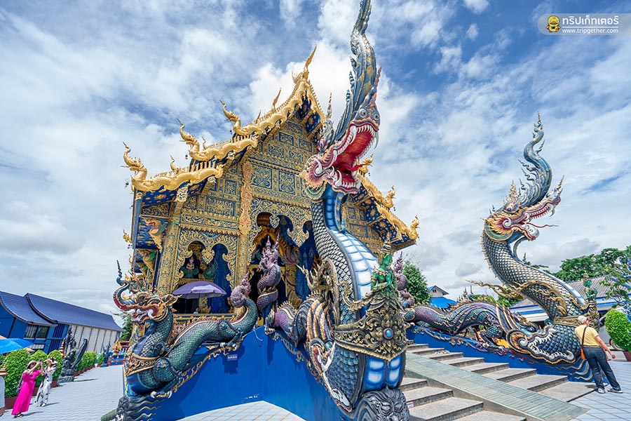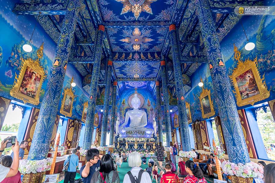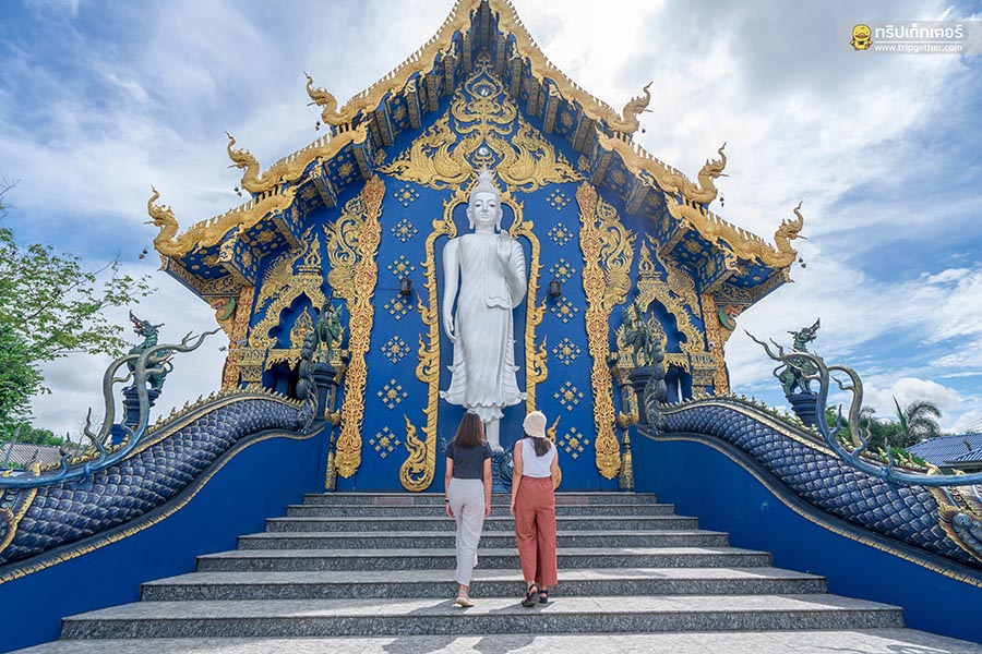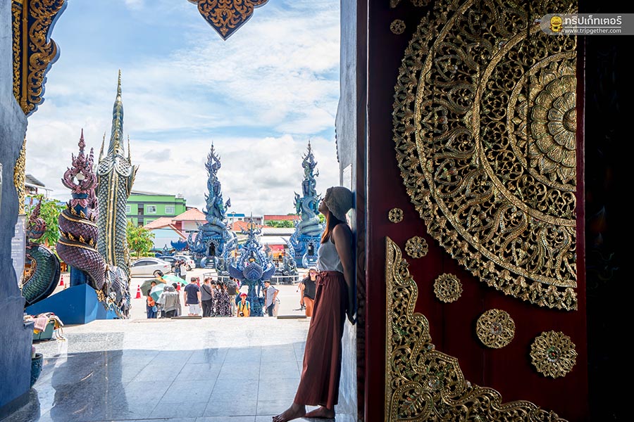 มาเริ่มต้นกันที่ วัดล่องเสือเต้น จ.เชียงราย วัดสวยสีน้ำเงินโดดเด่นที่สร้างด้วยสถาปัตยกรรมไทยประยุกต์ กับแนวคิดในการนำสีน้ำเงินซึ่งเป็นสีโทนหลักตัดกับสีทอง โดยสีน้ำเงินฟ้าหมายถึงธรรมะของสมเด็จพระสัมมาสัมพุทธเจ้า ที่เป็นคำสอนที่เป็นจริงตามเหตุผล เปรียบเสมือนท้องฟ้าที่สดใส บริเวณโดยรอบพระอุโบสถสีน้ำเงินประดับประดาด้วยลวดลายปูนปั้นสวยงามแปลกตา ภายในมีผลงานจิตรกรรมฝาผนังที่แสดงถึงเรื่องราวพุทธประวัติ อีกทั้งยังประดิษฐาน ‘พระพุทธรัชมงคลบดีตรีโลกนาถ’ พระประธานสีขาวมุกอยู่ภายอีกด้วย รับรองว่ามาเที่ยววัดร่องเสือเต้น นอกจากจะได้บุญแล้ว ยังได้รูปสวยๆ มุมดีๆ อีกเพียบ!