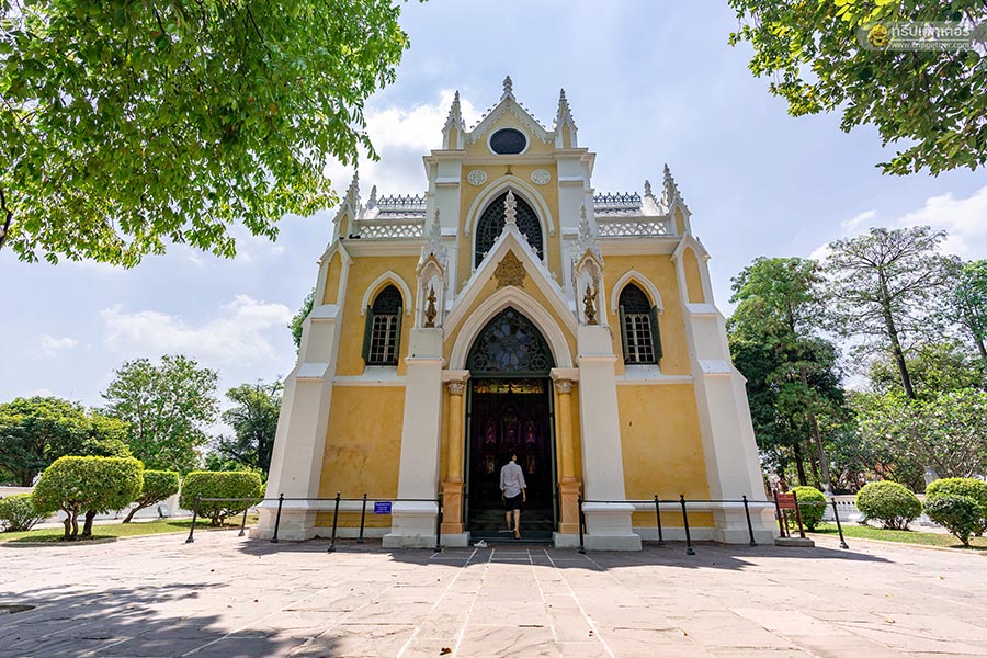 ปิดท้ายกันที่ วัดนิเวศธรรมประวัติ วัดสวยที่ได้รับอิทธิพลมาจากตะวันตก วัดแห่งนี้สร้างขึ้นเมื่อปี พ.ศ 2419 ตั้งอยู่บนเกาะกลางแม่น้ำเจ้าพระยา โดยใครที่อยากไปยลโฉมความงามของวัดแห่งนี้จะต้องนั่งกระเช้าข้ามแม่น้ำไป ถือเป็นเอกลักษณ์เฉพาะของวัดแห่งนี้ รอบๆ ตัววัดจะเป็นอาคารสีสันสดใสสไตล์ยุโรปที่ดูแปลกตาไปจากวัดที่คุ้นเคย บรรยากาศร่มรื่นปกคลุมไปด้วยต้นไม้น้อยใหญ่นานาพันธุ์ ขณะที่ไฮไลท์ของวัดต้องยกให้กับความงามของอุโบสถที่ออกแบบโดยใช้ศิลปะแบบโกธิคและเลียนแบบโบสถ์คริสต์ ภายในงดงามด้วยกระจกสี หน้าต่าง และแท่นที่ประดิษฐาน ‘พระพุทธนฤมลธรรโมภาส’ อันวิจิตรตระการตา นอกจากนี้รอบๆ บริเวณยังมีมุมสวยๆ ให้พักผ่อนถ่ายรูปกันอีกมากมาย
