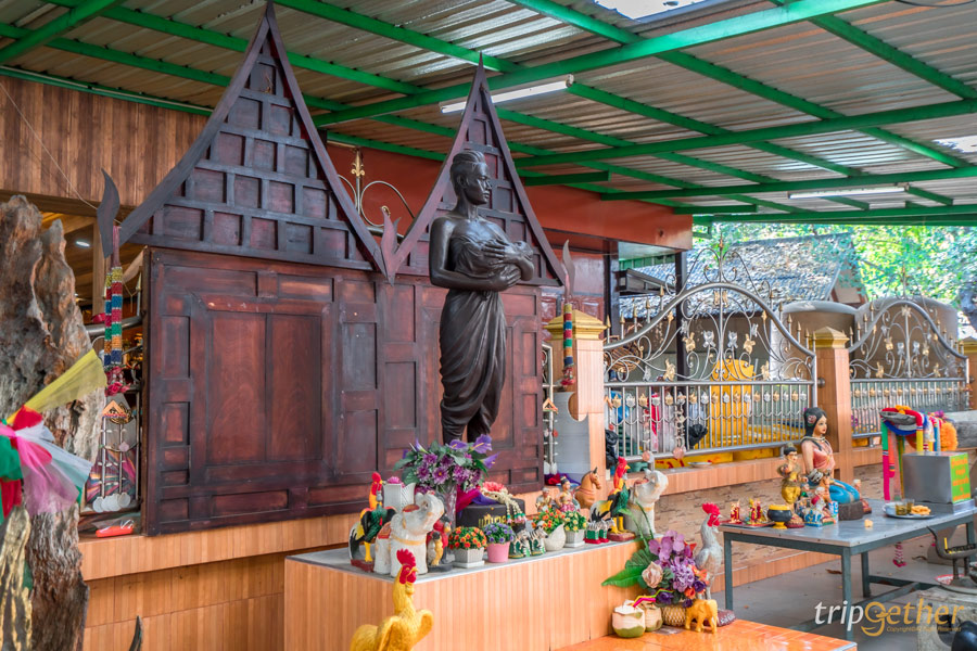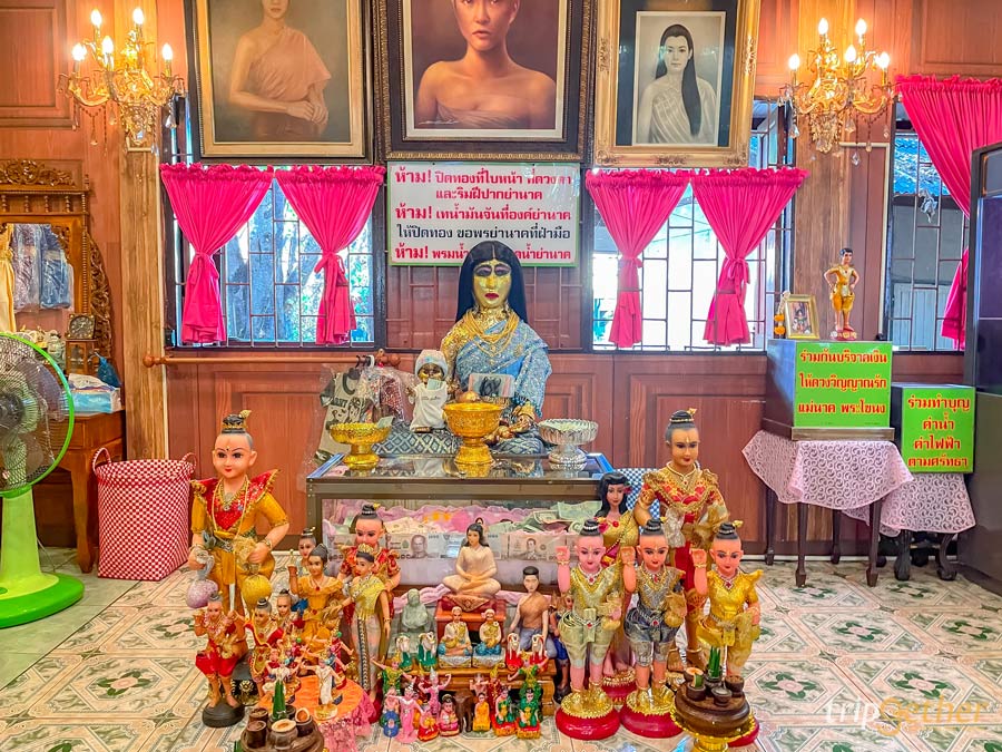 พระแม่ลักษมี ที่ดาดฟ้าชั้น 4 ของศูนย์การค้าเกษรวิลเลจ เป็นจุดมูของเหล่าคนโสดอีกที่หนึ่งที่หลายๆ คนรู้จัก ลานดาดฟ้าที่โปร่งโล่งสบายมีเทวรูปของพระแม่ตั้งอยู่พร้อมกับผู้คนที่แวะเวียนนำดอกไม้สีชมพูมาสักการะและขอพรจากองค์ท่านอย่างไม่ขาดสาย บรรยากาศดูขลังมากๆ การเดินทางแสนง่าย เพราะเมื่อเดินเข้าสู่ศูนย์การค้าก็จะพบกับป้ายบอกทางตามจุดต่างๆ ไม่ต้องกลัวไปไม่ถูกเลย ส่วนเคล็ดลับการไหว้ เพียงนำดอกบัว กุหลาบ หรือดอกไม้และผลไม้ชนิดใดก็ได้ที่เป็นสีชมพู แล้วสวดคาถาตามด้วยการขอพร นำดอกบัวไปลอยน้ำแล้วเดินวนรอบพระแม่ 3 รอบ เพียงเท่านี้ก็รอลุ้นได้เลย นอกจากจะได้ขอพรเรื่องคู่แล้ว ยังได้รับความศักดิ์สิทธิ์ขององค์พระแม่ให้ช่วยปัดเป่าอันตรายและเสริมดวงเรื่องการเงินอีกด้วย