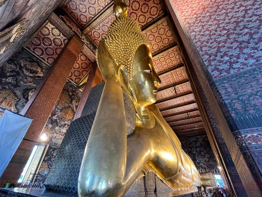 พระพุทธไสยาส พระพุทธรูปปางไสยาสที่ถือว่าใหญ่ที่สุดในกรุงเทพฯ ที่ประดิษฐานในวิหารพระพุทธไสยาส วัดพระเชตุพลวิมลมังคลารามราชวรมหาวิหาร หรือวัดโพธิ์ นอกจากจะมีความสวยงามตามศิลปะไทยแล้ว ยังเป็นที่บอกกล่าวกันว่าสามารถประทานพรให้กับผู้ที่ขอพรเรื่องหัวใจให้สมหวังได้อย่างอัศจรรย์ โดยเฉพาะคนโสดที่อายุขึ้นเลข 3 โดยการตำแหน่งของพระพุทธไสยาสที่เราจะกราบขอพรนั้นอยู่ที่บริเวณฝ่าพระบาทซึ่งเขียนลวดลายไว้อย่างวิจิตร การมากราบพระพุทธไสยาส นอกจากจะได้เข้าวัดเติมแต้มบุญกันแล้ว ยังแถมการขอพรให้ชีวิตมีลุ้นเรื่องความรักได้อีกด้วย