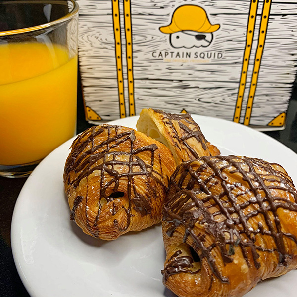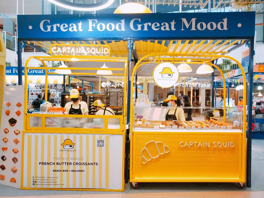 Captain Squid “The Original Croissant” ร้านนี้มีหลายสาขาให้เลือกไปกินมาก การันตีความฮอตฮิตขายดี ด้วยรสชาติกลมกล่อม หอมเนย เพราะทางร้านใช้เนยสดแท้จากฝรั่งเศส หากินง่ายเพราะมีหลายสาขา และชิ้นขนาดพอดีคำ ไม่เล็กไม่ใหญ่ รสชาติอร่อยเกินราคามาก ครัวซองต์รสชาติที่มาร้านนี้แล้วจะพลาดไม่ได้เลยก็คือ รส Special Spinach Cheese Croissant ทางร้านจะนำผักโขมไปผัดให้หอมกับเห็ดสด คลุกเคล้ากับซอสเบชาเมลฉบับโฮมเมดของทางร้าน แล้วอบชีสให้เยิ้มๆ ไซส์มินิพอดีคำ แถมคนที่กินมังสวิรัติยังสามารถกินได้ด้วยนะ แล้วไม่ได้มีขายแค่ครัวซองต์แต่ยังมีเมนูขนมอบอื่นๆ พร้อมเสิร์ฟแบบสดใหม่ทำวันต่อวันอีกเยอะแยะเลย