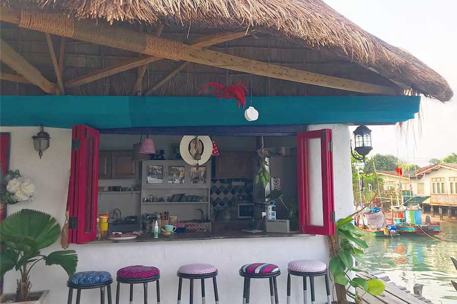 เดอะ โบ๊ทเฮาส์ อีกหนึ่งที่พักสวยขวัญใจโซนบางเสร่ ที่นอกจากจะบริการห้องพักดีไซน์สุดชิคแล้วนั้น ยังมีคาเฟ่ร้านอาหารเล็กๆ ที่ถึงแม้จะไม่ได้เข้าพักที่นี่ก็มาพักผ่อนด้วยของอร่อยกันได้ ตัวร้านเป็นบาร์ในบ้านหลังน้อยที่มุงด้วยหญ้าคาสไตล์บาหลี และดูสนุกสนามผ่านความคัลเลอร์ฟูลของไอเทมต่างๆ มีมุมนั่งให้เลือกันไม่เยอะ แต่บอกเลยว่าวิวสวย บรรยากาศดีกันทุกจุด ส่วนเมนูก็บริการทั้งอาหารคาวสไตล์ฟิวชั่น อาหารอีสาน และเครื่องดื่มเย็นๆ รวมถึงมีค็อกเทลเด็ดให้ชิลล์ยามเย็นกันด้วยนะ