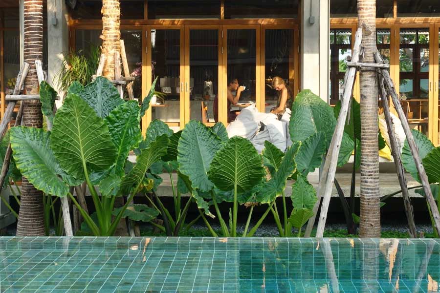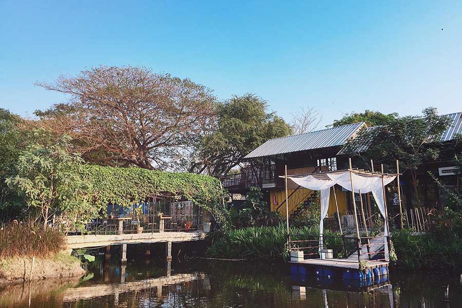ต่อกันแบบพิเศษกับความชิลล์แบบคูณสองบนถนนพุทธมณฑลสาย 1 ซันคิส พูล เบด คาเฟ่ ที่นี่ซ่อนตัวอยู่ท่ามกลางธรรมชาติของสวนสีเขียวแบบทรอปิคอล ซึ่งมีบริการทั้งห้องพักดีไซน์โมเดิร์นสุดชิค พร้อมสระว่ายน้ขนาดใหญ่สีฟ้ามรกตสุดสบายตา ส่วนคาเฟ่นั้นจะเป็นตึกเล็กๆ ล้อมด้วยกระจก ที่ถึงแม้ใช้วัสดุธรรมชาติแต่ถูกดีไซน์ได้อย่างเฉียบขาดในทุกมุม ส่วนมุมชิลล์ต้องยกให้เอาท์ดอร์ที่เป็นชานเรือนห้อยขาริมคลอง ที่เหมาะแก่การมานั่งจิบกาแฟเย็นๆ ยามบ่ายที่สุดในย่านนี้