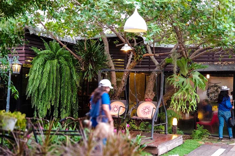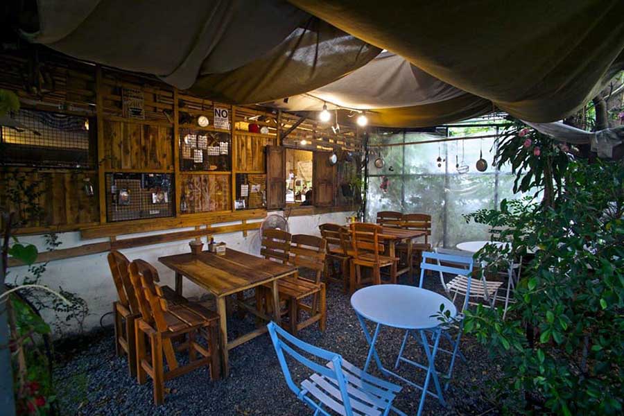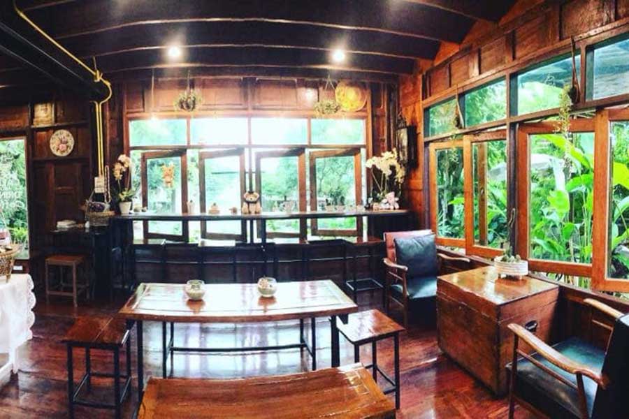 ปิดท้ายกันด้วย บ้านไม้ คาเฟ่ ร้านน่านั่งบรรยากาศสุดอบอบอุ่นสไตล์โฮมคาเฟ่ ให้ความรู้สึกเหมือนการมาพักผ่อนที่บ้านผู้ใหญ่ใจดี แน่นอนว่าตัวร้านเป็นบ้านไม้หลังสวยขนาด 2 ชั้น ที่ออกแบบผสมผสานกับความโมเดิร์น ซ่อนตัวอยู่ในสวนดอกไม้สุดน่ารัก ภายในมาในโทนสีน้ำตาลจากเนื้อไม้ และไอเทมสไตล์วินเทจที่ทำชวนให้นึกถึงบรรยากาศเก่าๆ มีมุมให้เลือกนั่งทั้งโต๊ะ โซฟา และบาร์ชมบรรยากาศรอบๆ ตบท้ายด้วยเมนูอร่อยต้องไม่พลาดกับเครื่องดื่มที่มีทั้ง กาแฟ ชาเขียว สมูทตี้ และเบเกอรี่เพิ่มความหวานก็มีทั้งเค้ก บราวนี่ และวาฟเฟิล เป็นอีกหนึ่งร้านที่น่าจะถูกใจสาวๆ มากเลยทีเดียว