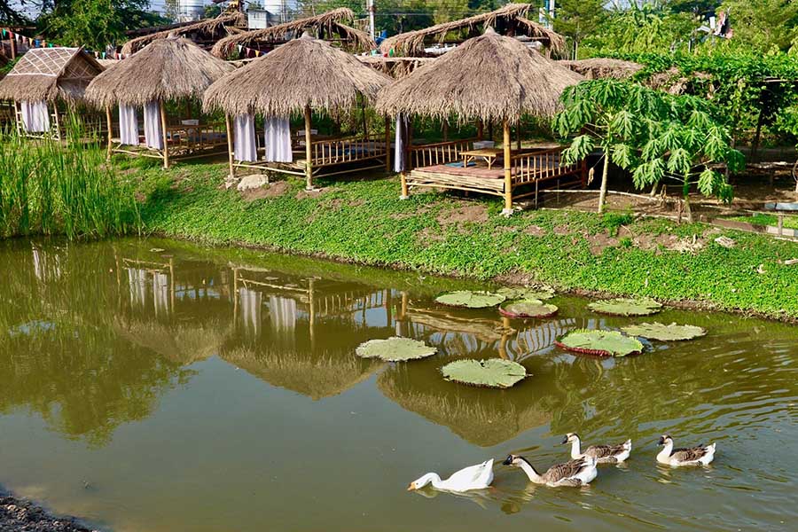 และสำหรับใครที่ชอบบรรยากาศแบบไทยๆ อยากลำรึกถึงวันหอมหวานในวันวานต้องร้านนี้ บ้านมาดามคาเฟ่ แอนด์ เรสเตอร์รองต์ ตัวร้านเป็นบ้านไม้เรือนไทยแบบโบราณ ที่เนรมิตรชั้นล่างให้เป็นมุมกินข้าว ล้อมด้วยกระจกใสดูโมเดิร์น บรรยากาศดีสุดๆ ส่วนเรื่องเด่นของร้านนี้ต้องยกให้กับเมนู ที่ปรุงในสูตรโบราณ ประณีตใส่ใจทุกรายละเอียด ซึ่งเมนูเด็ดต้องยกให้เหล่าน้ำพริกรสชาติต่างๆ ที่เสริฟพร้อมผักสดแบบยกมาทั้งสวน และเมนูหากินยากอย่าง ยำส้มโอกลีบบัว หมูสร่ง และยังมีขนมไทยให้เลือกชิมอีกหลายเมนู และที่สำคัญในโซนเดียวกันยังมีเรือนโบราณสีภาค ให้เราแปลงกายถ่ายรูปเก๋ๆ กันอีกด้วยนะ