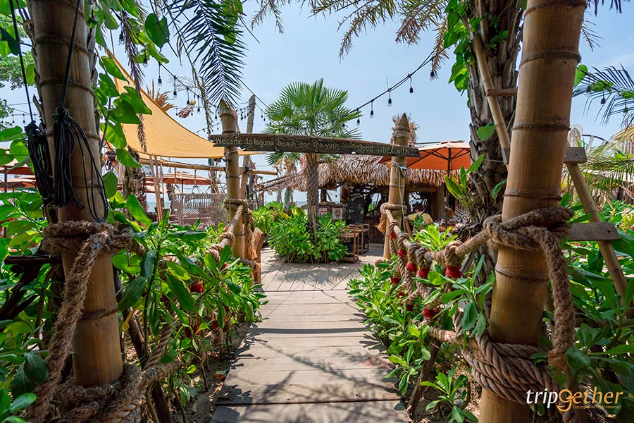 Laguna Cafe แลนด์มาร์กริมทะเลสุดปังที่ให้ฟีลเหมือนหลงมาอยู่เกาะกลางทะเล การตกแต่งมีเอกลักษณ์และโดดเด่นมาก โดยเน้นใช้วัสดุจากธรรมชาติ สีทั้งร้านคุมโทนด้วยสีน้ำตาลและสีเขียว ตัดกับสีน้ำทะเลฟ้าครามได้อย่างสวยงาม บอกเลยว่านี่แหละคือบรรยากาศของท้องทะเลจริงๆ อีกทั้งยังถ่ายรูปสวยทุกมุม ที่นี่ก็มีให้เลือกเยอะมากและเป็นแบบโอเพ่นแอร์ พร้อมรับลมทะเลแบบเต็มๆ สำหรับเมนูส่วนใหญ่เป็นอาหารทะเล มีหลายเมนูมาก เรียกได้ว่ามาฝากท้องมื้อหนักๆ ได้เลย อีกทั้งยังมีเค้ก เบเกอรี่ เครื่องดื่มต่างๆ ถือว่าเป็นคาเฟ่ที่ระดับตัวแม่และสายอินฟลูต้องห้ามพลาดเด็ดขาด