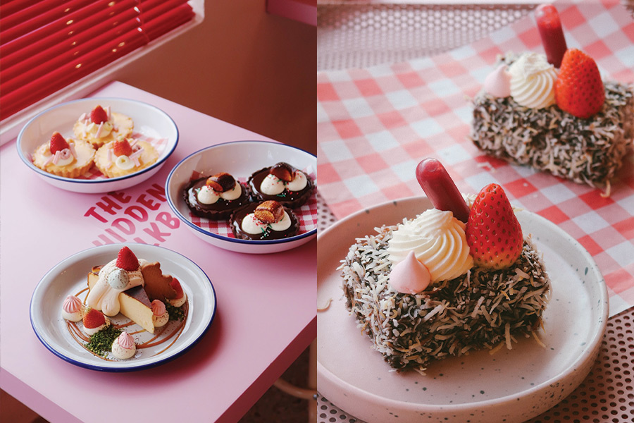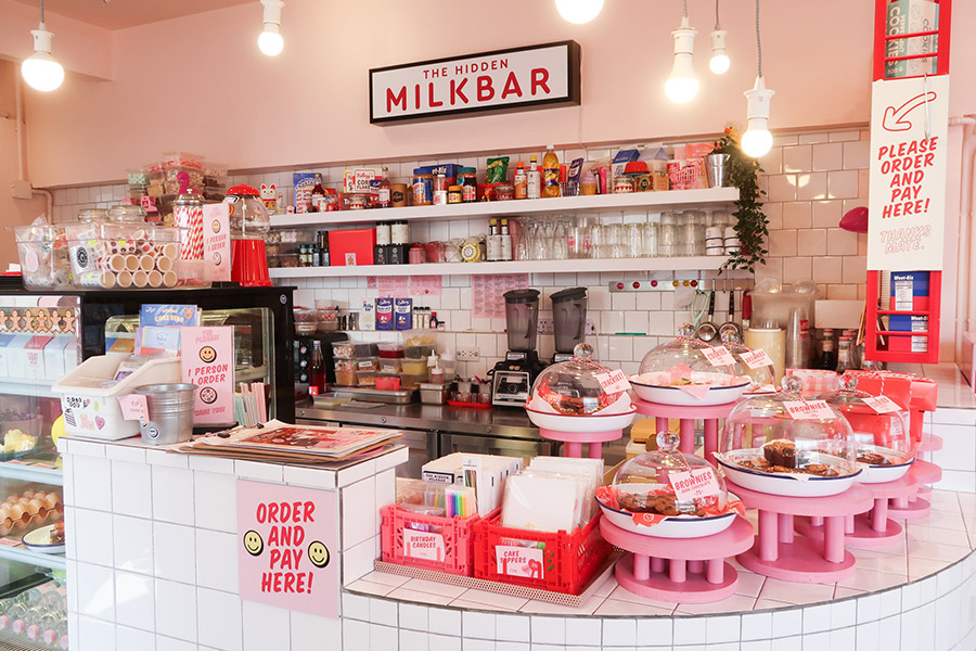 The Hidden Milkbar คาเฟ่บนชั้น 3 ของตึก Fotoclub BKK แหล่งรวมสินค้าสไตล์วัยรุ่นที่หลงรักการถ่ายรูป ตัวร้านที่เน้นการตกแต่งสไตล์หวานๆ ในโทนสีชมพูสดใส มาร้านมิลค์บาร์น่ารักๆ แบบนี้จะพลาดมิลค์เชคของร้านไม่ได้เลย ประเดิมด้วยเมนูอร่อยๆ อย่าง blue pond, Cherry Ripe, CHOC-O-CHOCCY, Corn Caramel, Strawberry Field, Campfire, Lemon Slices, Minties iced choccy และยังมีเบเกอรี่อย่าง Lamington cake, Basque cheesecake และ Crackieee cookie บอกเลยใครเป็นสายหวานต้องลิ้มลอง!