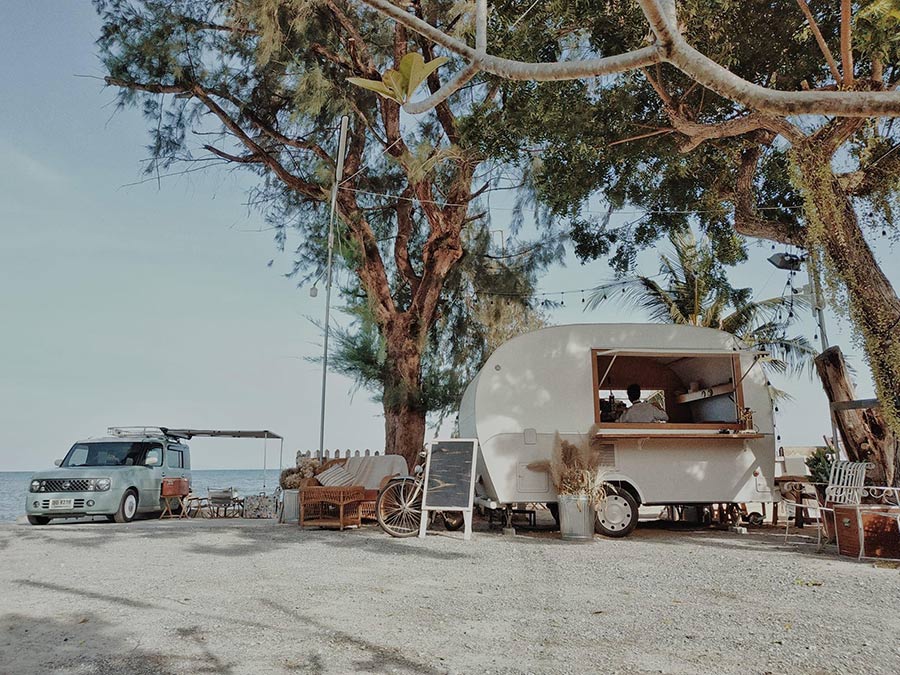 Coco Rodante’ คาเฟ่ติดทะเลสไตล์รถบ้าน vintage บนหาดส่วนตัวกับบรรยากาศเงียบสงบ การตกแต่งสไตล์มินิมอลเน้นโทนสีขาว ครีม และน้ำตาล ดูชิลล์และสบายๆ บวกกับโต๊ะนั่งในร้านที่ไม่ได้เยอะจนเกินไปและที่นั่งทุกที่หันหน้าเข้าหาทะเล ทำให้รู้สึกถึงความเป็นส่วนตัวและได้นั่งดื่มด่ำกับบรรยากาศของท้องทะเลได้แบบเต็มๆ อากาศก็สบายๆ ไม่ได้รู้สึกร้อนเพราะอยู่ใต้ร่มเงาไม้และมีลมทะเลพักมาตลอด ส่วนเมนูทางร้านมีให้เลือกทั้งชา ไอศกรีม เบเกอรี่ กาแฟ และพิเศษมากๆ โดยทางร้านใช้เครื่องกาแฟ manual แบบคันโยก ทำให้รสกาแฟมีความนุ่มนวลและกลมกล่อม ใครที่อยากสัมผัสความชิลล์แบบนี้ต้องมาร้าน Coco Rodante’ แล้ว
