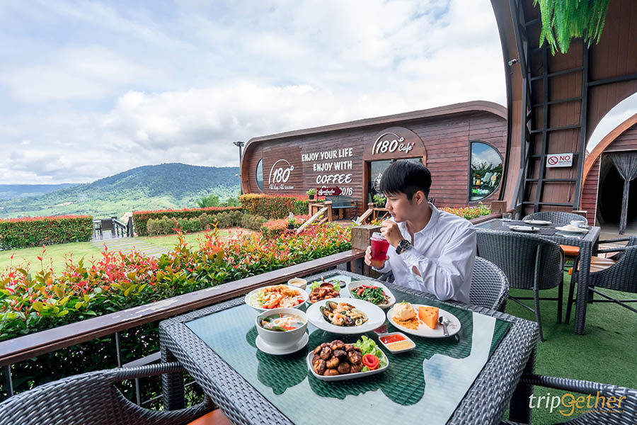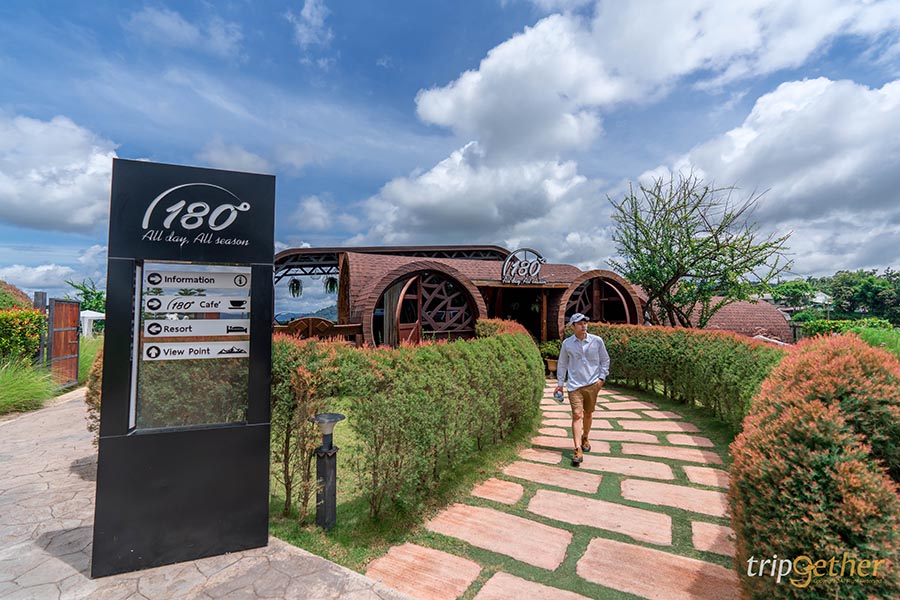 คาเฟ่ที่มาพร้อมที่พักวิวเขา 180 ออล เดย์ ออล ซีซั่น คาเฟ่สวยสไตล์โมเดิร์นที่เน้นการตกแต่งด้วยวัสดุไม้และเหล็ก ผสมผสานกับธรรมชาติโดยรอบได้อย่างลงตัว มีโซนให้เลือกนั่งทั้งอินดอร์ และเอ้าท์ดอร์ ซึ่งทั้ง 2 โซนจะให้อารมณ์ที่แตกต่างกันออกไป อย่างในโซนอินดอร์จะให้อารมณ์นั่งแล้วอบอุ่น เป็นส่วนตัว ส่วนโซนเอ้าท์ดอร์จะให้อารมณ์นั่งสบาย และได้เสพบรรยากาศธรรมชาติและวิวสวยๆ ของทิวเขาได้แบบเต็มตา ซึ่งถ้าใครโชคดีไปเที่ยวจังหวะหลังฝนตก ในช่วงฤดูหนาว ก็จะได้สัมผัสกับทะเลหมอกที่ลอยขาวฟุ้งไปทั่วเขากันแบบฟินๆ