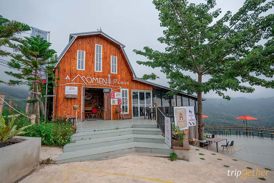 เดอะบาร์น ช็อกโกแลต ชีส บาร์ แอนด์ กริล คาเฟ่แห่งนี้เป็นส่วนหนึ่งของที่พัก อะ โมเมนต์ ออฟ เลิฟ ซึ่งตั้งอยู่บนเขาค้อติดกับวัดพระธาตุผาซ่อนแก้ว ซึ่งถือเป็นโลเคชั่นที่ดีมากๆ เพราะนอกจากจะมีวิวเขาที่มีความสวยงามแล้ว ยังติดกับแหล่งท่องเที่ยวชื่อดังของจังหวัด ทำให้นักท่องเที่ยวง่ายต่อการวางแพลนและเดินทาง เรียกว่ามาจุดเดียว ได้เที่ยวถึง 2 ที่ ในส่วนของตัวร้านตกแต่งออกมาสไตล์ยุโรป ลักษณะคล้ายกับโรงนา ภายในตกแต่งมาในสไตล์โมเดิร์นที่เน้นใช้วัสดุเหล็กและกระจกใสเป็นหลัก ทำให้ไม่ว่าจะอยู่นอกร้านหรือในร้าน ก็สามารถดื่มด่ำกับวิวธรรมชาติได้อย่างเต็มตาแบบไม่มีอะไรมากั้น