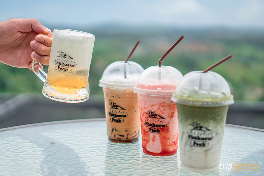 ภูแก้วพีค คาเฟ่ คาเฟ่แห่งนี้ตั้งอยู่บนเนินเขาเป็น 1 ในโซนท่องเที่ยวของ ภูแก้ว รีสอร์ท ที่พักบรรยากาศดีในอำเภอเขาค้อ ซึ่งถือเป็นคาเฟ่ที่มีวิวสวยเป็นอันดับต้นๆ ของจังหวัดเพชรบูรณ์ นอกจากนี้ยังมีบริการเครื่องดื่มและของทานเล่นให้เลือกซื้อมากมาย เช่น บัตเตอร์เบียร์ สุพรีมมัทฉะลาเต้ สตอรว์เบอร์รีสมูทตี้ ไส้กรอกชีส ไส้กรอกพริก ไส้กรอกรมควัน ไก่ป๊อปและไก่กรอบ พอท้องอิ่มก็มาต่อกันที่มุมถ่ายรูป ซึ่งที่นี่นอกจากวิวเขายังมีโซนให้เดินเล่นอยู่ด้านบน ซึ่งจะมีมุมไฮไลท์คือหัตถ์พระเจ้า จุดชมวิวรูปมือขนาดใหญ่ที่ยื่นออกไปตรงเนินเขา บอกเลยว่าปัง เช็คอินแล้วเก๋แบบไม่ซ้ำใครแน่นอน