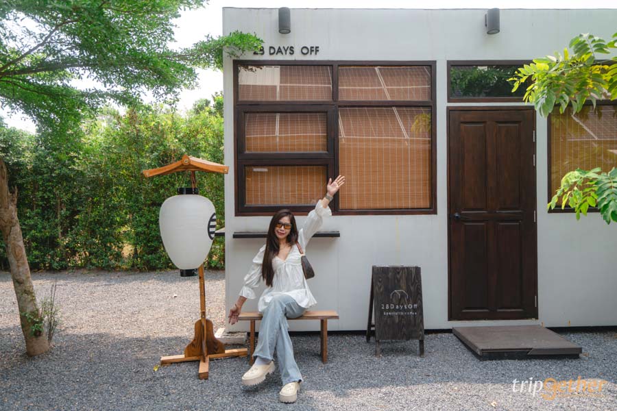 พาไปใช้วันหยุดท่ามกลางธรรมชาติต่อที่ 28 Day Off Coffee คาเฟ่ใกล้กรุงเทพ ที่ตัวร้านล้อมรอบด้วยต้นไม้ใหญ่ ตกแต่งร้านมีกลิ่นอายความญี่ปุ่นเบาๆ มีความมินิมอลผสมผสานกับงานไม้และเฟอร์นิเจอร์แบบเอิร์ธโทน บอกเลยว่าดีไซน์ละมุนมาก มีมุมให้แชะภาพเพียบ ที่นี่โดดเด่นในเรื่องของเมล็ดกาแฟคุณภาพดีจากหลายแหล่งทั้งในและนอกประเทศ นอกจากนี้ก็อย่างมีเมนูเครื่องดื่มอื่นๆ รวมถึงขนมหวานโดนัทโฮมเมดและครอฟเฟิล