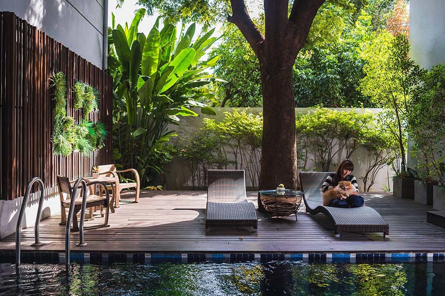 Ketawa Pet Friendly Hotel อีกหนึ่งที่พักที่สามารถพาสัตว์เลี้ยงมาได้ ที่นี่ให้ฟีลอบอุ่น มีความเป็นกันเอง และที่สำคัญเอาใจคนรักหมาสุดๆ ด้วยอุปกรณ์สำหรับสัตว์เลี้ยง ไม่ว่าจะเป็นถ้วยอาหาร แผ่นปูรอง ขนม รวมถึงมีสระว่ายน้ำที่น้องหมาสามารถเล่นได้ฉ่ำๆ และโซนคาเฟ่ก็ยังสามารถพามานั่งด้วยกัน สำหรับที่นี่ไม่ได้เป็นโรงแรมใหญ่ จะมีเพียง 13 ห้อง แต่ละห้องกว้างขวาง มีพื้นที่ใช้สอยเยอะ และสิ่งอำนวยความสะดวกครบ บอกเลยว่าเป็นสวรรค์ของคนรักสัตว์และเจ้าของสุดๆ