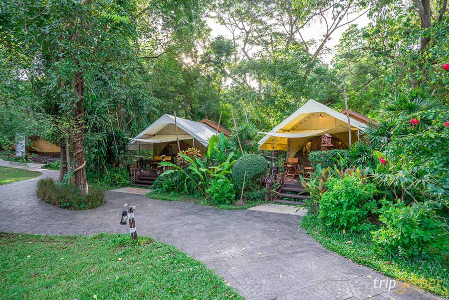 มาใช้ชีวิตสโลว์ไลฟ์ หินตก ริเวอร์ เเคมป์ ณ ช่องเขาขาด ที่พักแกลมป์ปิ้งที่มาในสไตล์เก๋ๆ อย่างซาฟารี บวกกับบรรยกาศท่ามกลางป่าเขาและอยู่ติดริมแม่น้ำแคว ทำให้มีกลิ่นอายของความผจญภัยแฝงอยู่ภายในที่พัก ส่วนตัวที่พักเป็นเต็นท์แคนวาสที่ผสมผสานความหรูหราและความเป็นธรรมชาติได้อย่างลงตัว เต็นของที่นี่มีด้วยกัน 2 แบบ คือ Deluxe Tent และ Superior Tent ภายในมีพื้นที่ใช้สอยกว้างขวาง มีห้องน้ำ และอำนวยความสะดวกครบครัน รวมถึงมีระเบียงหน้าห้องพักที่สามารถทำกิจกรรมเล็กๆหรือจะมานั่งชิลล์ๆ ปล่อยใจไปกับธรรมชาติ นอกจากนี้ที่ห้ามพลากก็คือ บ่อน้ำธรรมชาติที่เหมาะกับการมาแช่น้ำเย็นๆ เล่นน้ำไปพร้อมกับมองวิวของแม่น้ำและขุนเขาไปด้วย รับรองว่าเพลิดเพลินสุดๆ