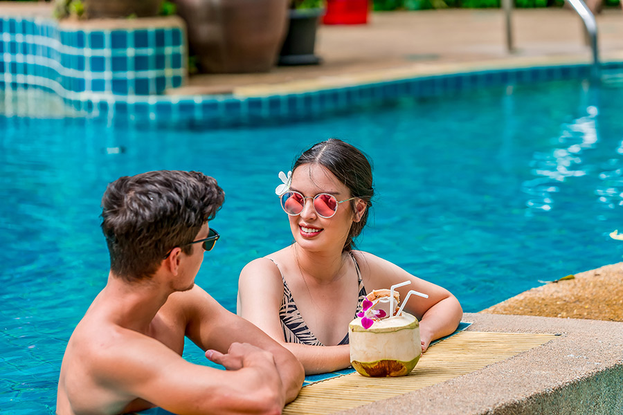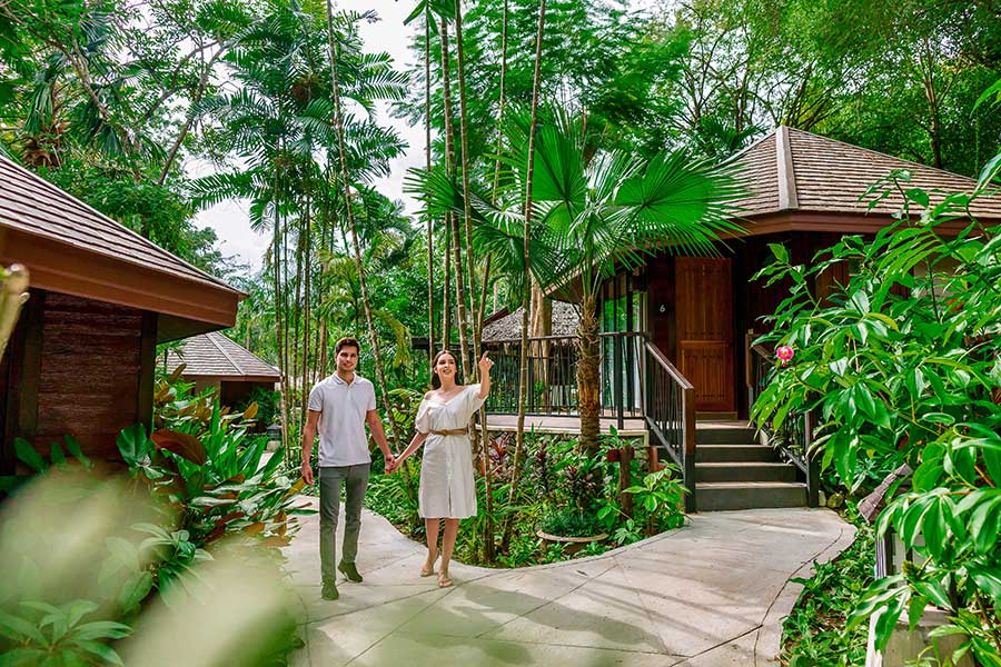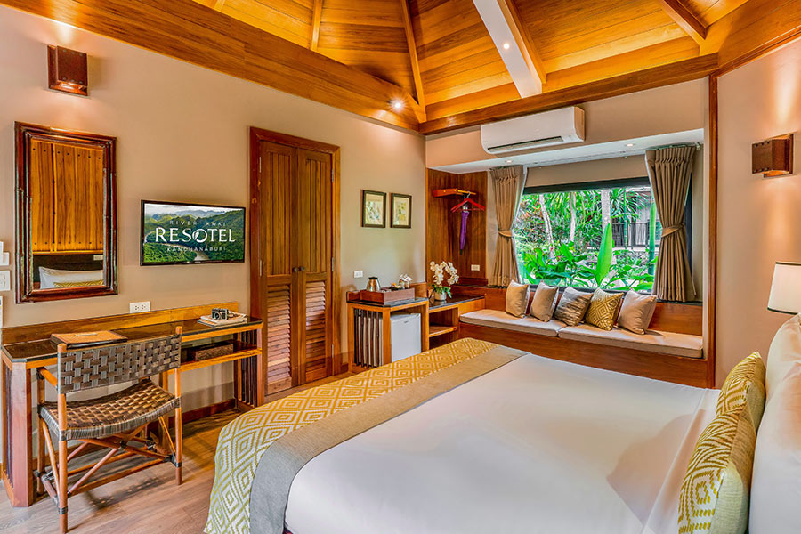 มานอนชาร์จพลังกลางธรรมชาติที่ River Kwai Resotel ที่พักกาญจนบุรีที่ซ่อนตัวอยู่กลางความอุดมสมบูรณ์ของป่าไม้ มีแนวขุนเขาโอบล้อม อีกทั้งยังอยู่ติดริมแม่น้ำแคว เรียกได้ว่าเป็นบรรยากาศของการพักผ่อนจริงๆ ส่วนห้องพักถูกออกแบบมาอย่างใส่ใจและกลมกลืนกับสภาพแวดล้อม ทุกห้องตกแต่งอย่างสวยงาม มาพร้อมสิ่งอำนวยความสะดวกครบครัน ห้องพักมีให้เลือกมากถึง 99 ห้องและมีหลายแบบ เริ่มจากห้องที่ถูกโอบล้อมอยู่กลางป่าเขียวขจี สำหรับคนชอบธรรมชาติก็มีห้อง Jungle Chalet, Jungle Triple Chalet, Superior และ Deluxe ต่อมาห้องริมแม่น้ำสุดชิลล์ก็จะมีห้อง Deluxe River View, River View Grand Deluxe และ Plunge Pool Jacuzzi Villa นอกจากนี้ถ้ามาเป็นกลุ่มใหญ่หรือต้องการจัดประชุมสัมมนาก็สามารถมาพักที่นี่ได้เลย มีห้องพร้อมรองรับ มีห้องประชุม และมีพื้นที่ทำกิจกรรมต่างๆ ส่วนกิจกรรมในที่พักมีมากมาย ทั้งขี่จักรยานเสือภูเขา ว่ายน้ำ พายเรือแคนู พายซับบอร์ด ล่องแพไม้ไผ่ หรือใครอยากเสพธรรมชาติชิลล์ๆ ก็มีสวนปาล์มและสวนผลไม้นานาพันธุ์ เรียกได้ว่าเป็นที่พักที่น่ามาพักผ่อนในวันหยุดมาก