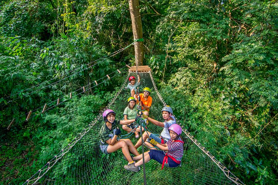 โฮมพุเตย ริเวอร์แคว ออนเซ็น รีสอร์ท มาครบทั้งบรรยากาศริมน้ำและกลางป่า เหมาะกับคนที่อยากมาดีท๊อกซ์ความเหนื่อยล้า เพราะความพิเศษของที่นี่เป็นออนเซ็นรีสอร์ท มีบ่อน้ำแร่ร้อนธรรมชาติที่ให้ฟีลเหมือนออนเซ็นญี่ปุ่น การได้มาแช่น้ำร้อนๆ นอกจากจะช่วยผ่อนคลาย ยังมีประโยชน์ต่อร่างกายทั้งผิวพรรณและระบบหมุนเวียนเลือด แถมในที่พักยังมีบ่อน้ำร้อนถึง 5 บ่อ บอกเลยว่าใครมาแล้วห้ามพลาดการแช่น้ำร้อนเด็ดขาด ส่วนบรรยากาศที่พักเต็มไปด้วยความร่มรื่นและความเงียบสงบ การออกแบบสไตล์ Boutique Log Cabin Home เน้นใช้วัสดุจากธรรมชาติทั้งไม้สักและไม้ไผ่ ดูแล้วสวยงาม ให้ความรู้สึกอบอุ่น ผ่อนคลาย สำหรับห้องพักแบ่งออกเป็นทั้งหมด 6 แบบ ตอบโจทย์ผู้เข้าพักทุกกลุ่ม ถ้ามากับกลุ่มเพื่อนหรือครอบครัวก็แนะนำห้อง Superior Family with balcony, Two-Bedroom River View Deluxe Family และ Deluxe River View ส่วนใครควงกันมาเป็นคู่และต้องการสร้างโมเมนต์พิเศษให้แก่กันก็ต้องห้อง River View Onsen Villa มาพร้อม onsen น้ำแร่ร้อนธรรมชาติส่วนตัว แถมมีระเบียงหน้าห้องพักที่มองออกไปเห็นวิวโค้งแม่น้ำแควสวยๆ นอกจากนี้ยังมีกิจกรรมสนุก เอาใจสายแอดเวนเจอร์กับ Tree Top Adventure Park ที่มีกิจกรรมตามฐานต่างๆ อย่างการไต่บันไดลิง เดินข้ามสะพานเชือก โหนซิปไลน์ โดยกิจกรรมทั้งหมดนี้สามารถเล่นได้ทุกวัยและปลอดภัยสุดๆ วันหยุดนี้ใครกำลังมองหาที่พักสวย ครบจบทุกการพักผ่อน ปักหมุดมาที่นี่เลย
